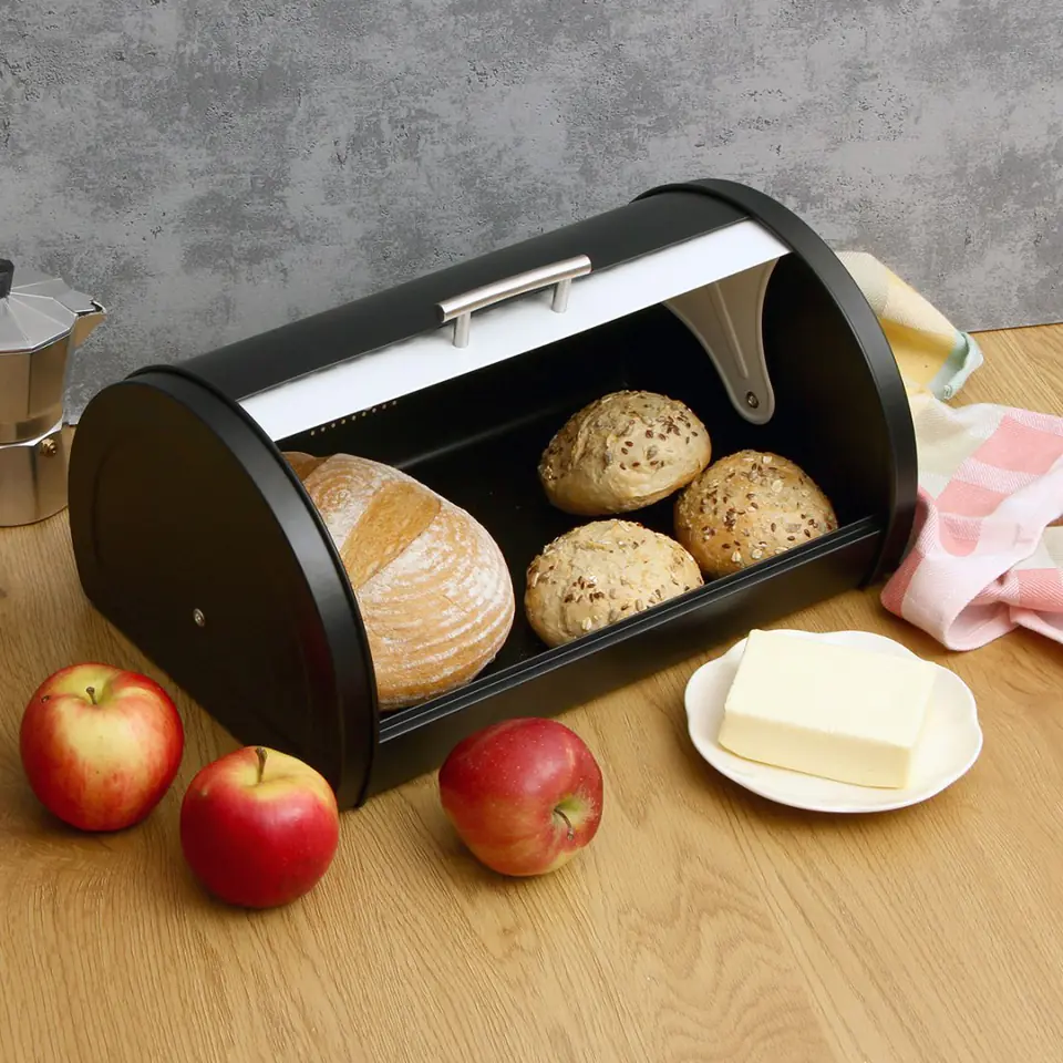 Duży pojemnik na pieczywo typu roll top wykonany z lakierowanej stali nierdzewnej