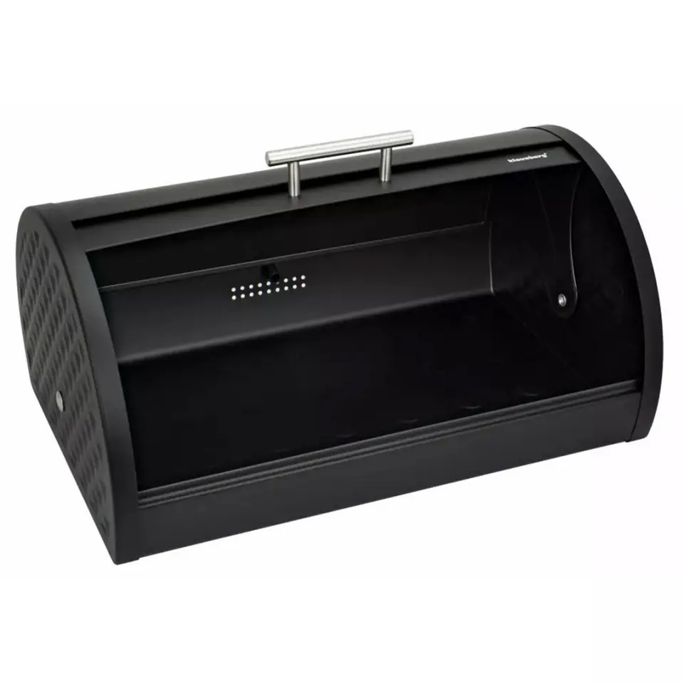 Chlebak o futurystycznym, nowoczesnym kształcie w klasycznej i uniwersalnej kolorystyce. Korpus produktu został wykonany z solidnego i trwałego metalu w czarnym wykończeniu. Posiada wygodną metalową pokrywę z również metalową rączką. Pokrywa z wykończeniem nawiązującym do diamentu nadaje chlebakowi oryginalnego charakteru.