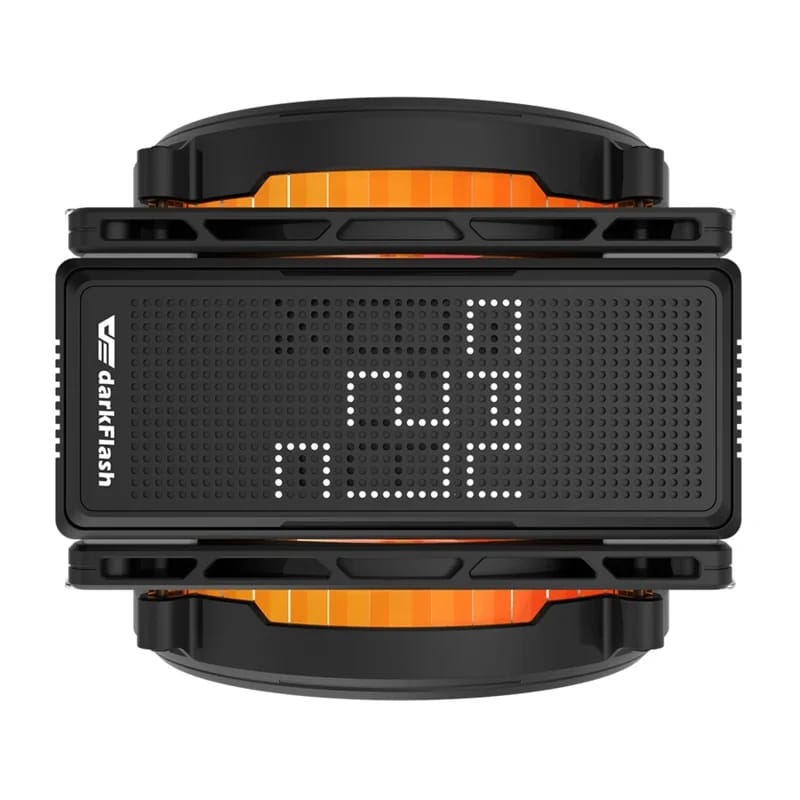 DarkFlash E400 to aktywne chłodzenie do procesora, które łączy świetną wydajność z nowoczesnym wyglądem. Cechą wyróżniającą ten model jest panel LED z matrycą punktową, umieszczony na górze radiatora. Wyświetla on aktualną temperaturę CPU, dzięki czemu możesz szybko ocenić, w jakich warunkach pracuje Twój procesor — bez uruchamiania dodatkowego oprogramowania. Informacje są prezentowane w prosty sposób i widoczne nawet w słabym świetle.