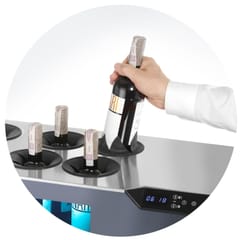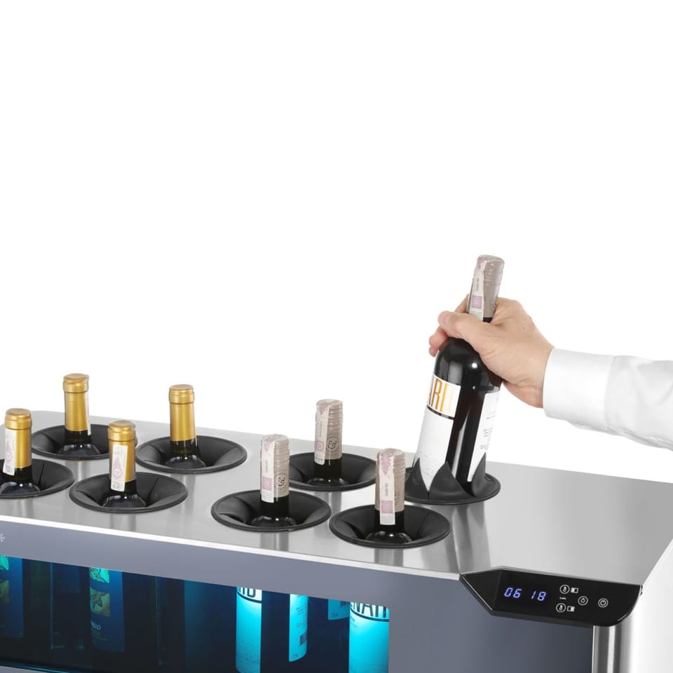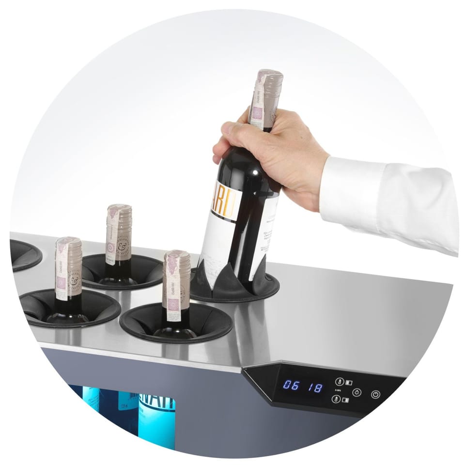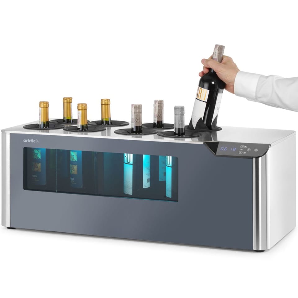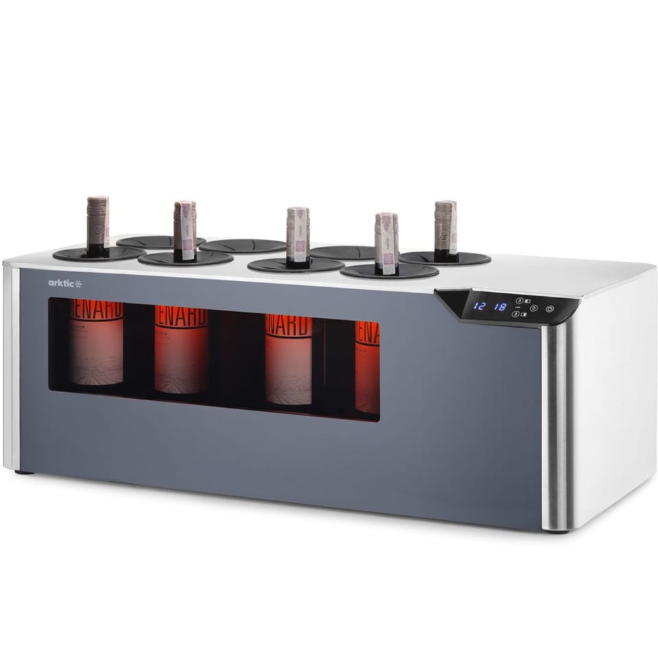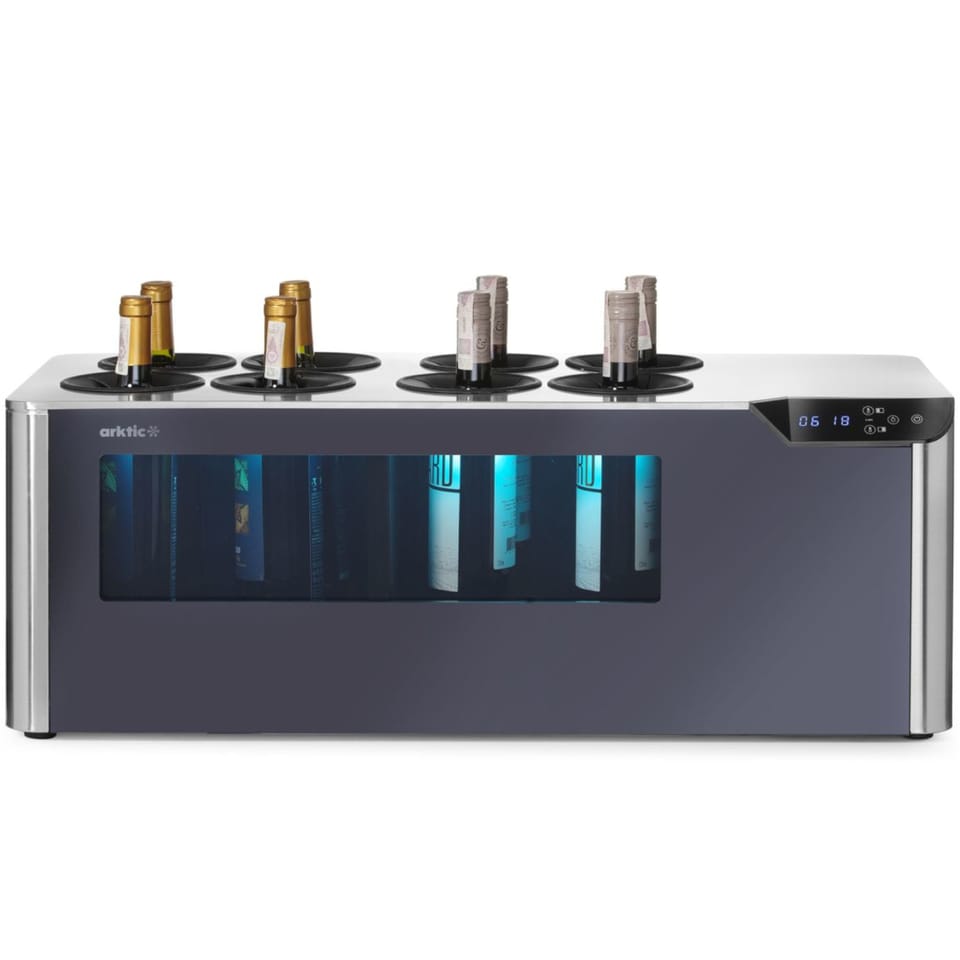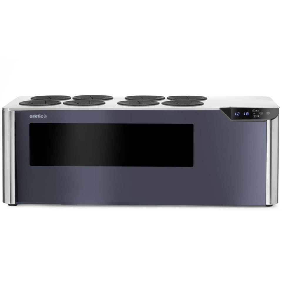 Kod producenta: 1030784Chłodziarka do wina nastawna dwustrefowa Cellar marki Arktic to idealne połączenie stylu i funkcjonalności dla barów, pokojów degustacyjnych i wykwintnych restauracji. Zastosowana technologia sprężania nie tylko skutecznie chłodzi, ale w razie potrzeby także podnosi temperaturę, utrzymując optymalne warunki przechowywania wina przez cały rok. Kompaktowa konstrukcja mieści 8 butelek. Panel dotykowy z możliwością wyboru koloru podświetlenia LED wnętrza komory (biały, bursztynowy lub zimny niebieski) podnosi walory estetyczne. Może być stosowana zarówno do otwartych, jak i zamkniętych butelek.Cechy produktu: