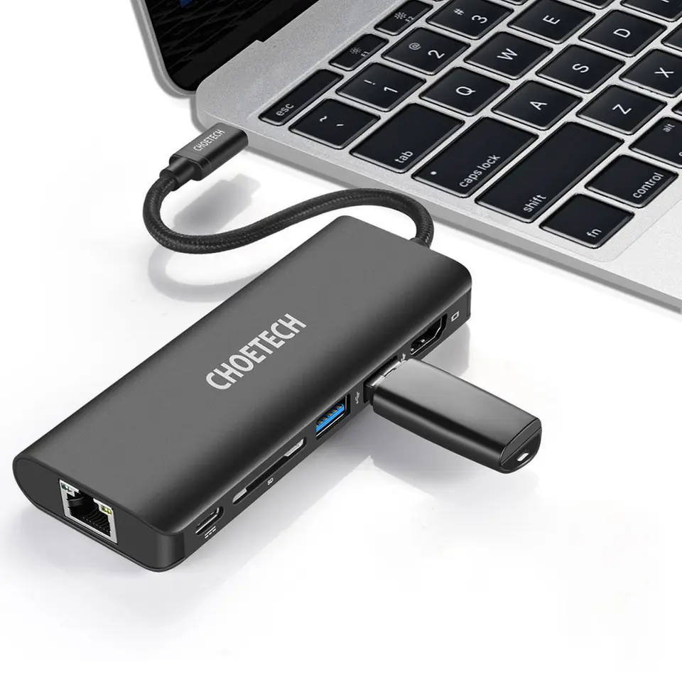 Choetech stacja dokująca adapter hub USB Typ C 6w1 100W PD czarny (HUB-M05):