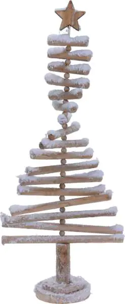 Choinka drewniana dekoracyjna BOHO 60cm Choinka bardzo ciekawa, ekologiczna, prosta ozdoba świąteczna, która umili czas Świąt nie tylko w domu ale też w biurze. Drzewko wykonane z naturalnych materiałów!Dane techniczne: Wymiary: 24x11x60 cm, Materiał: drewno Kolor: naturalne drewno, biały śnieg.