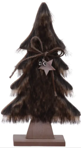 Choinka drewniana z futerkiem 28cm kolor brązowy