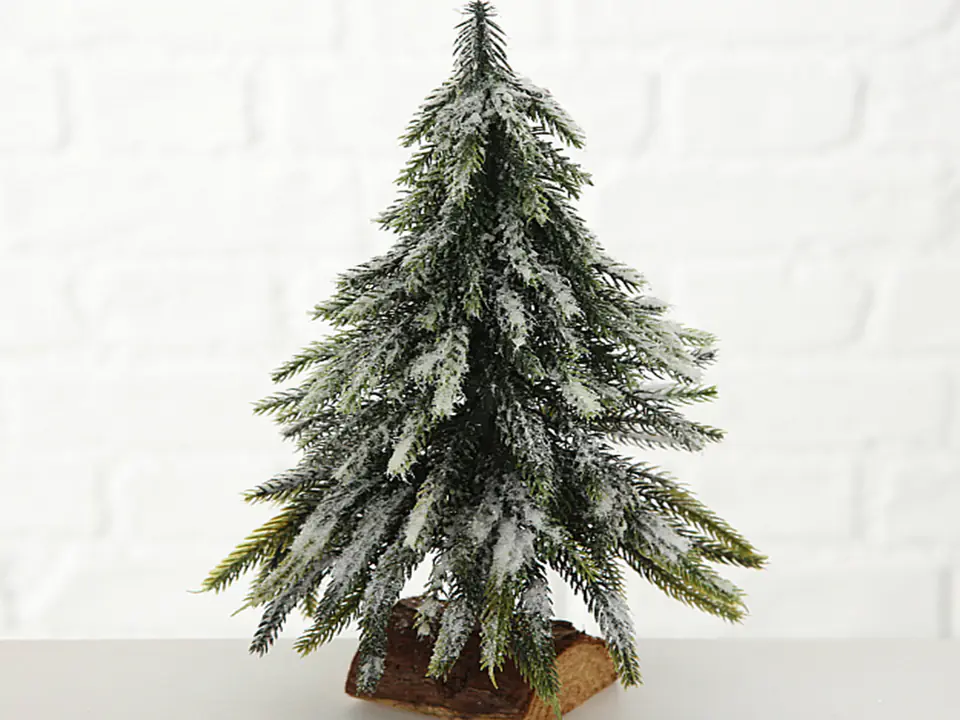 Mała dekoracyjna choinka, która przyciąga wzrok. Jej gałązki pokryte są białym, delikatnym puchem, przypominającym świeży śnieg, co nadaje jej magicznego wyglądu. Można ją ustawić na stole, kominku lub w oknie, tworząc przytulną atmosferę zimowych św