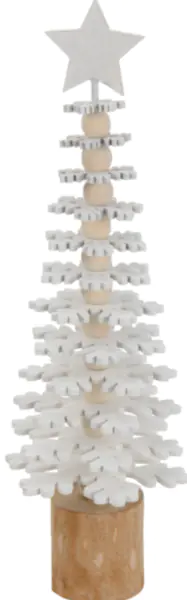 Choinka z drewna ozdoba bożonarodzeniowa ekologiczna biała śnieżynki 25 cm