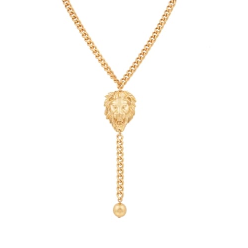 Choker z lwem i kulką. Długość 38.0cm+7.0 cm regulacji, grubość łańcuszka 0.5cm, długość zawieszki z lwem 9.0cm. Głowa lwa 3.0cm/2.5cm