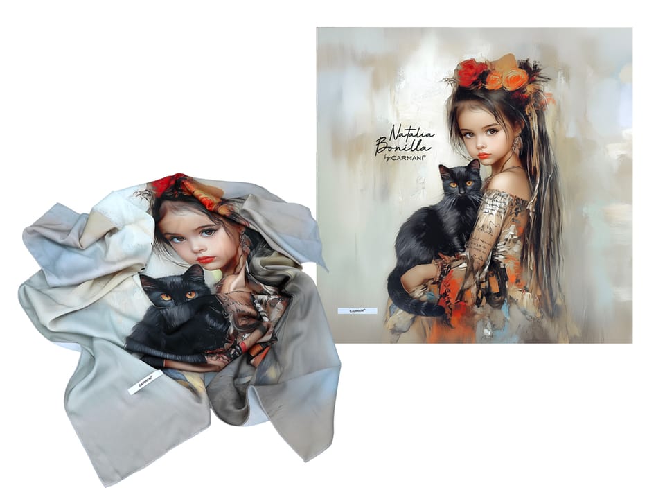 Chusty i szale marki CARMANI wykonane są z innowacyjnej tkaniny tamina szlachetna, która pozwala na wykonanie misternych wzorów przy zachowaniu jedwabistego dotyku.