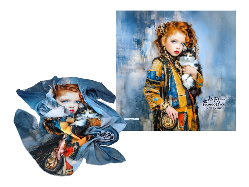 Chusty i szale marki CARMANI wykonane są z innowacyjnej tkaniny tamina szlachetna, która pozwala na wykonanie misternych wzorów przy zachowaniu jedwabistego dotyku.
