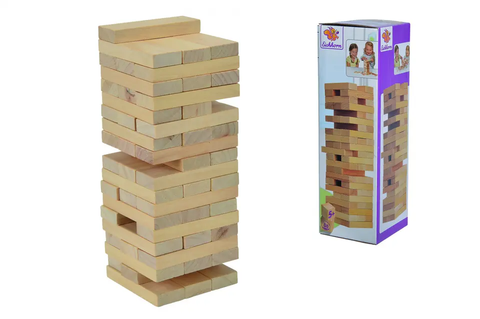 Gra zręcznościowa polegająca na przekładaniu drewnianych klocków, dla 2-6 graczy, 54 elementy.5l+.