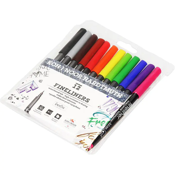 Cienkopisy przeznaczone glównie do pisania, szkicowania i rysowania na papierze. Dostepne są w zestawach po: 6, 12, 18, 24 i 30 kolorów. Ze wzgledu na ergonomiczny, trójboczny ksztalt są wygodne w uzytkowaniu. Zawierają tusz na bazie wody, są spieralne z wiekszości tkanin. Posiadają koncówke o grubości 0,3 mm, która dzieki specjalnej technologii tuszu nie zasycha przez dluzszy czas bez skuwki. Świetnie sprawdzają sie przy wymagających precyzji zadaniach, jako narzedzie do ozdabiania tekstu oraz robienia notatek. Zostaly wyprodukowane zgodnie z Europejskimi Normami Bezpieczenstwa na terenie Unii Europejskiej.