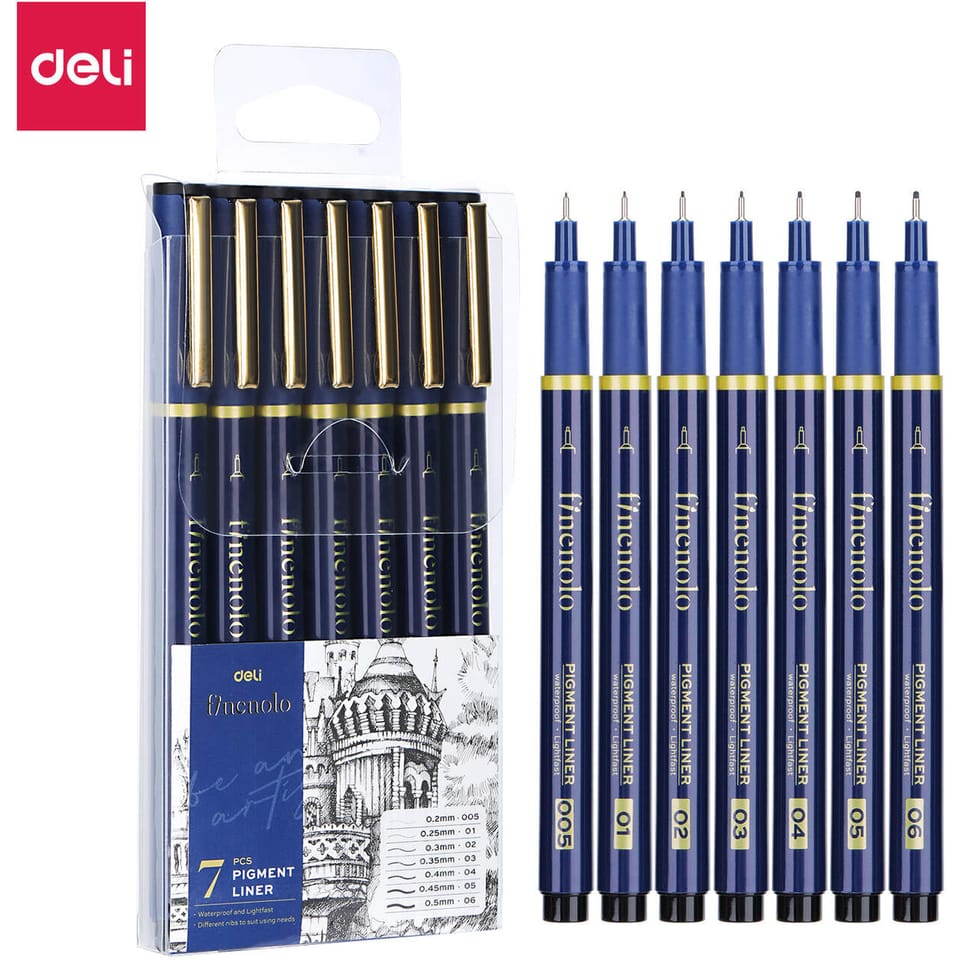 Cienkopis kreślarski FINENOLO 7 sztuk różne grubości EQ909 DELI
