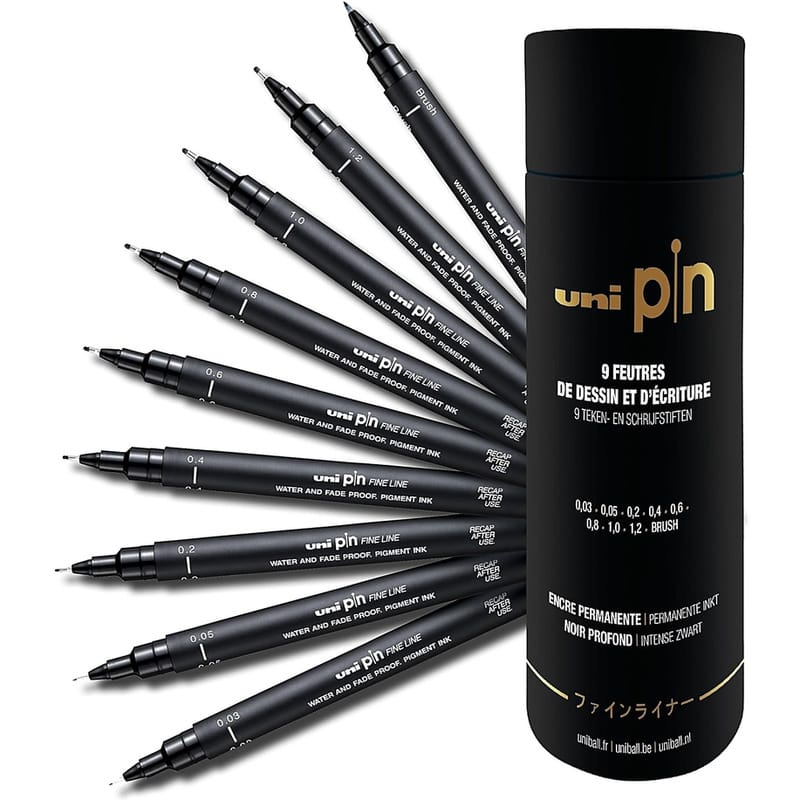 * zestaw profesjonalnych cienkopisów kreślarskich UNI PIN doskonałych dla projektantów, grafików i artystów * idealne do szkicowania i rysunku technicznego * bardzo szybko schną i nie rozmazują się * trwała i twarda końcówka fibrowa nie ulega rozwarstwieniu w miarę użytkowania * grubości w zestawie: 003, 005, 02, 04, 06, 08, 10, 12, BR * zapakowane w elegancką tubę * cechy cienkopisów UNI PIN FINE LINE: - pigmentowe - odporne na blaknięcie - wodoodporne - odporne na działanie alkoholu, amoniaku i rozpuszczalników - nie przesiąkają przez papier * w opakowaniu: 9 cienkopisów * jednostka sprzedaży 1 opakowanie * UNI to marka długopisów i ołówków produkowanych przez japońską firmę MITSUBISHI PENCIL COMPANY LIMITED - marka została wprowadzona w 1979 roku jako model pióra kulkowego, a następnie rozszerzyła się na pozostałe produkty MITSUBISHI PENCIL - produkty UNI charakteryzują się dużą dokładnością i starannością wykonania