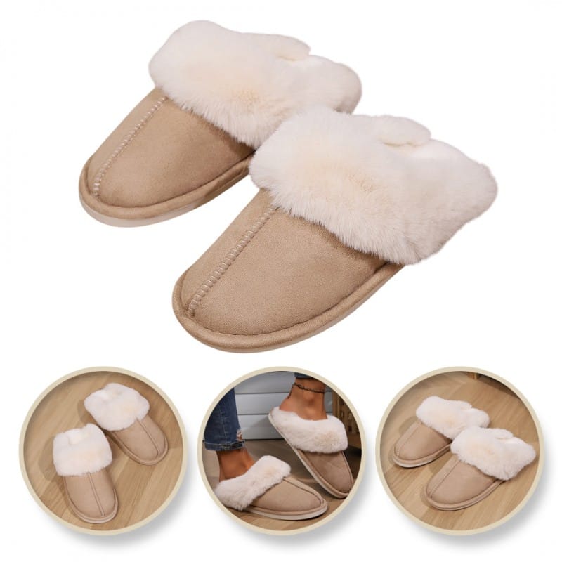 Ciepłe kapcie ocieplane beżowe z futerkiem, antypoślizgowe PAN01R40, rozmiar 40