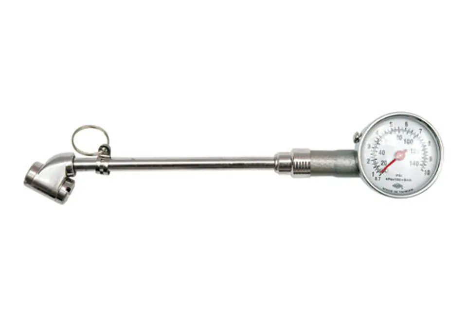 Ciśnieniomierz metalowy długi. Zakres pomiarowy 0,05-0,75 MPa, 0,5-7,5 bar.