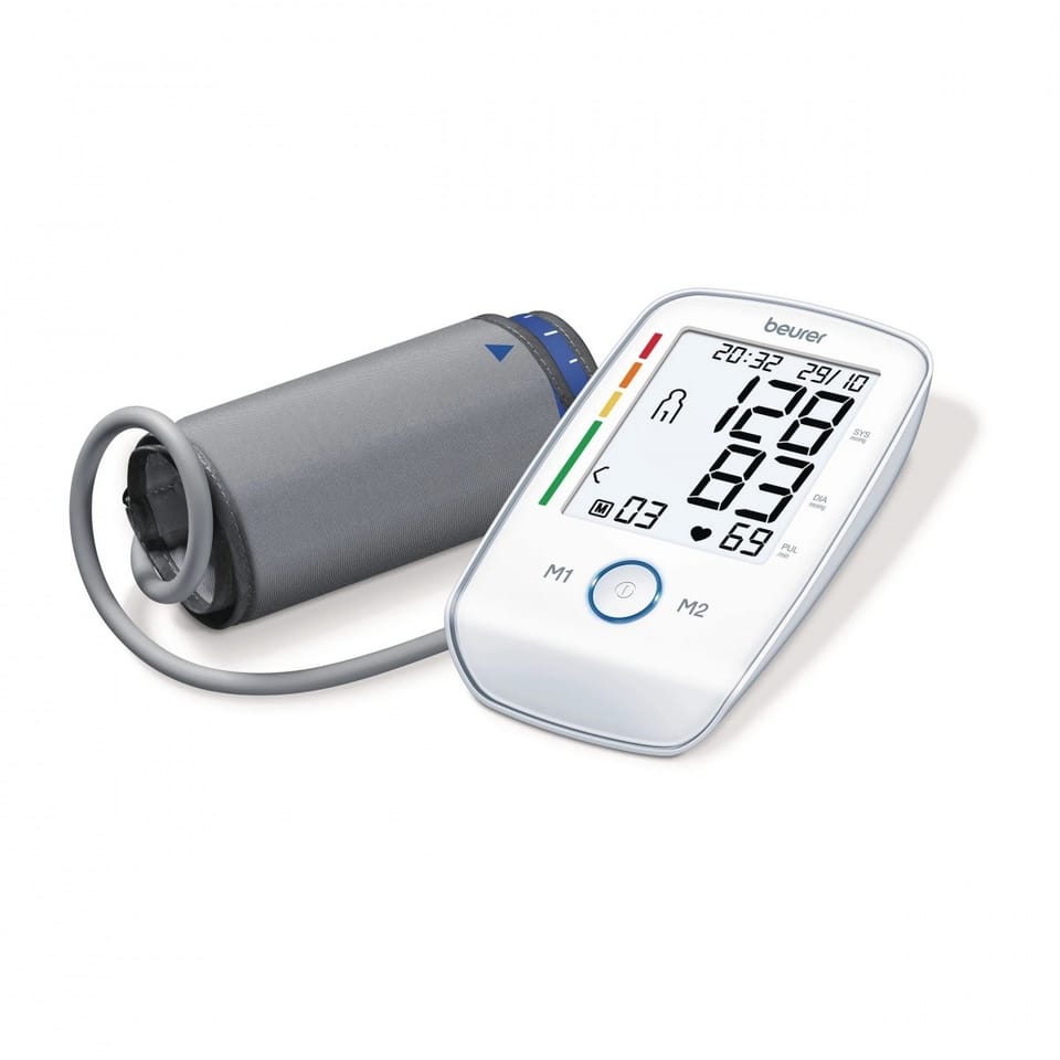 Ciśnieniomierz naramienny BM 45Wskaźnik ryzyka: z kolorową skalą do klasyfikacji wyników pomiaruŁatwa obsługa za pomocą przycisków dotykowychRozpoznawanie arytmii: rozpoznaje zaburzenia rytmu serca i ostrzega przed możliwością ich wystąpieniaPodświetlany ciśnieniomierz naramienny z ergonomicznym wyświetlaczem XLPrzyciski dotykowe i podświetlany, biały wyświetlacz w rozmiarze XL zapewniają wyjątkowo wygodną obsługę ciśnieniomierza naramiennego firmy Beurer. Dzięki rozpoznawaniu arytmii urządzenie BM 45 wykrywa i ostrzega przed możliwymi zaburzeniami rytmu serca.