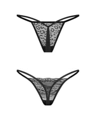 Dwupak stringów o minimalistycznym krojuZestaw obejmuje 2 warianty – jeden z subtelną koronką, drugi z odważnym, drapieżnym printem.Elastyczne materiały i paski gwarantują komfort oraz doskonałe dopasowanie.Ozdobny detal na przodzie dodaje zmysłowego charakteru.Skład: 92% poliester, 8% elastan.Produkt nie zawiera niklu.Produkt nieodpowiedni dla dzieci poniżej 3 lat – ryzyko zadławienia małymi elementami.