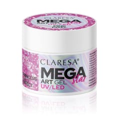 Intensywny blask, wielowymiarowe drobinki, kolory mieniące się jak w kalejdoskopie ? możesz mieć to wszystko z żelem do zdobień Claresa Megastar! Jego półprzezroczysta formuła z zatopionymi lśniącymi kawałeczkami folii w różnych kształtach i rozmiarach wygląda nieziemsko solo, ale też idealnie nadaje się do zdobień. Wypróbuj go jako delikatny błyszczący akcent, w manicure w stylu princess nails albo fantasy frenchu.