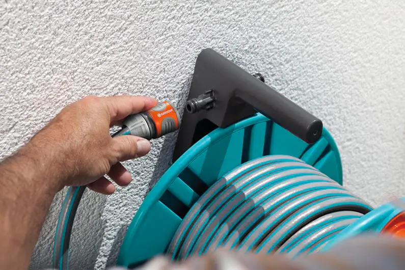 GARDENA Classic bęben naścienny na wąż jest wyposażony w przyłącza kranowe. Jeśli jednak jest wymagany większy przepływ wody, bęben można w prosty sposób połączyć z GARDENA Profi-System za pomocą przyłącza kranowego Profi. Po zakręceniu wody węże można podłączyć do blokady na rączce, która zapobiega wylewaniu się wody pozostałej w wężu i jej marnowaniu. Do łatwiejszego podlewania.