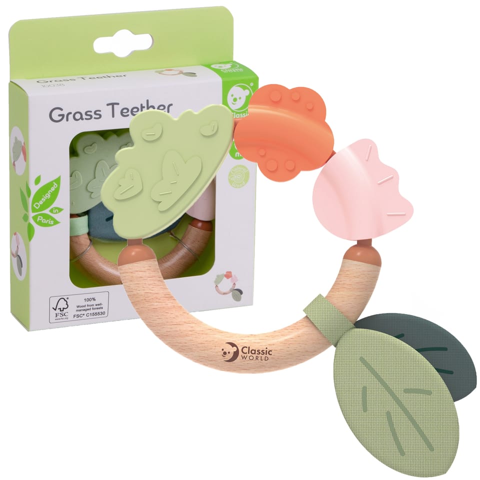Drewniana grzechotka marki Classic World to bezpieczna, stylowa i przyjazna środowisku zabawka stworzona specjalnie dla maluszków! Grzechotka nie tylko umila czas dziecku poprzez delikatne, stymulujące dźwięki, ale również przynosi ulgę podczas ząbkowania. Połączenie naturalnego drewna i miękkiego silikonu pobudza zmysły oraz zachęca do odkrywania świata, stanowiąc doskonały pierwszy gryzak i grzechotkę dla każdego maluszka.