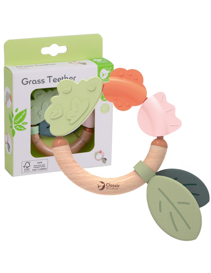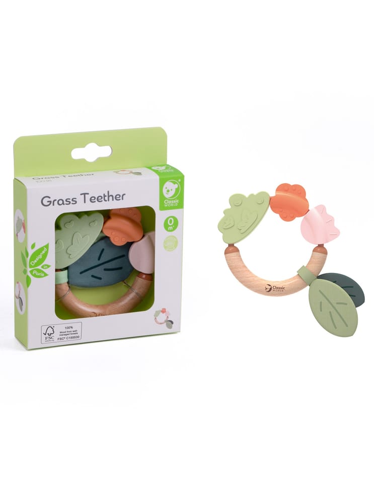 CLASSIC WORLD Drewniana Grzechotka Sensoryczna Gryzak 2w1