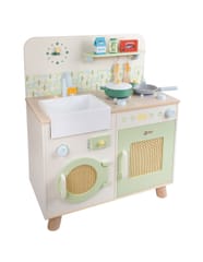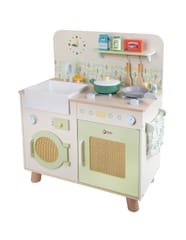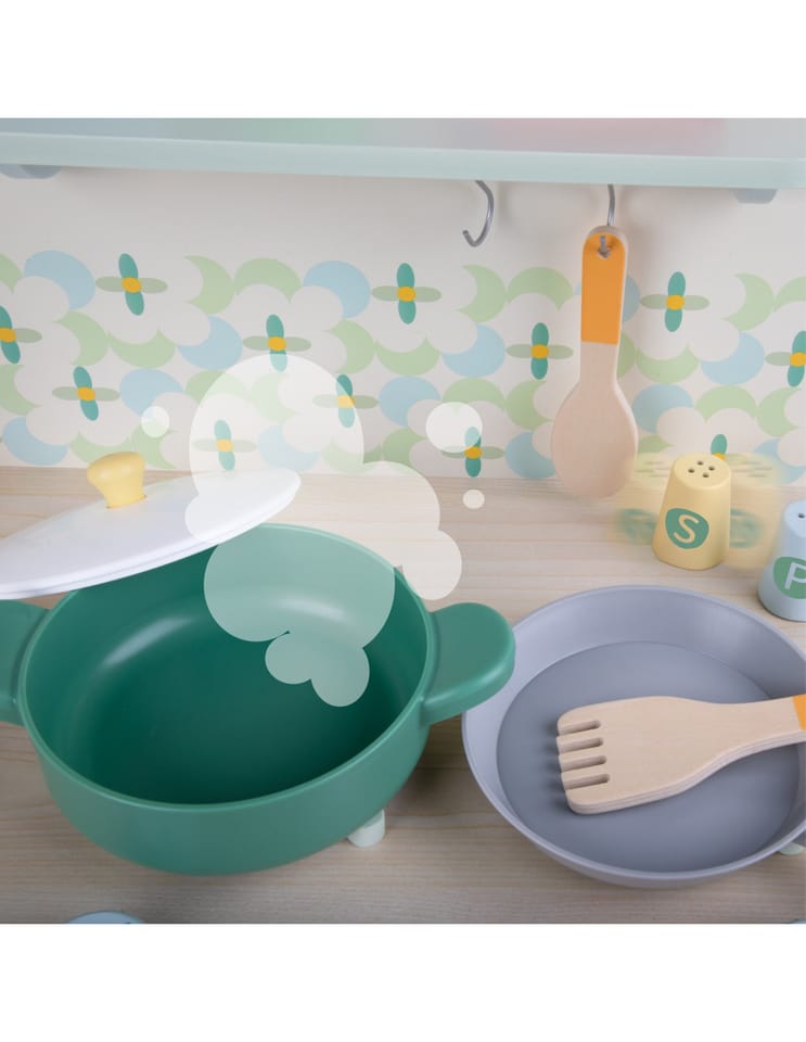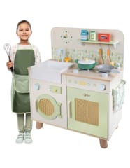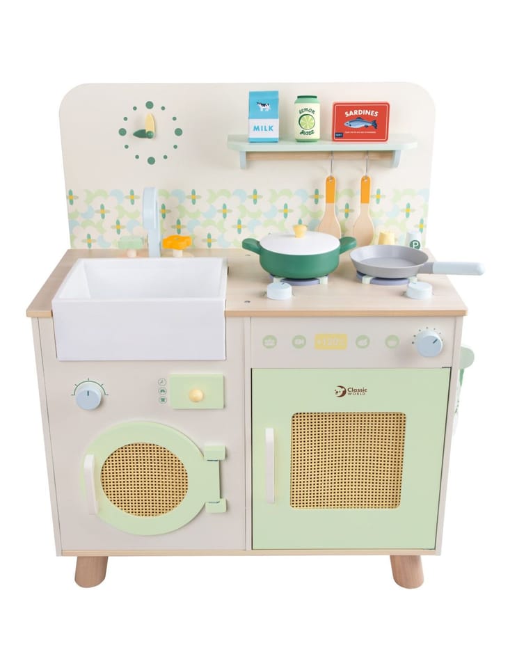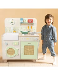 Ta stylowa, wielofunkcyjna kuchnia to idealne miejsce do kulinarnych przygód w dziecięcym wydaniu. Naturalna kolorystyka, realistyczne detale i akcesoria sprawiają, że zabawa staje się jeszcze bardziej wciągająca. Dzieci mogą odgrywać codzienne sytuacje, rozwijając przy tym kreatywność, samodzielność i zdolności manualne.