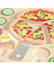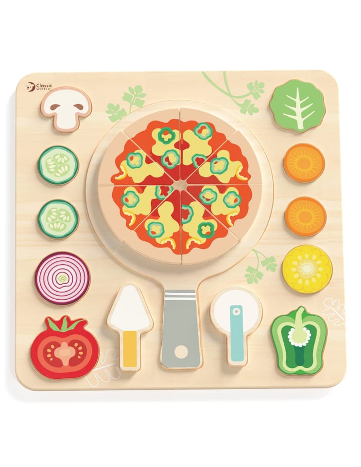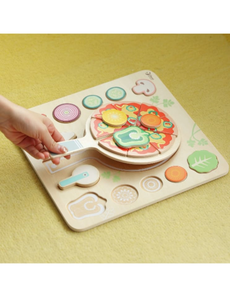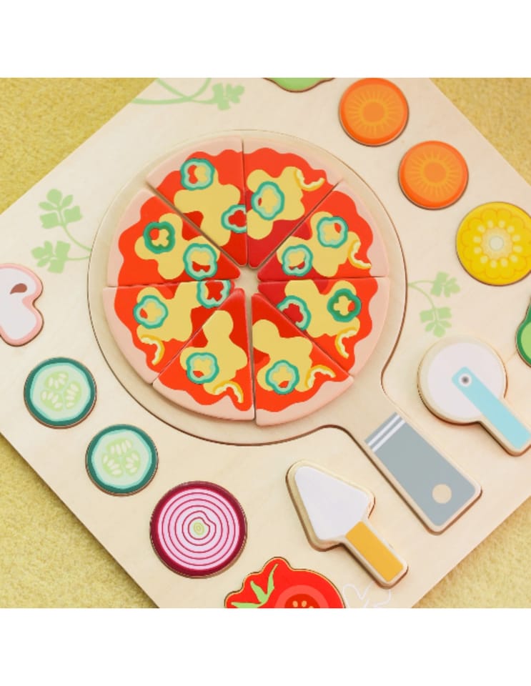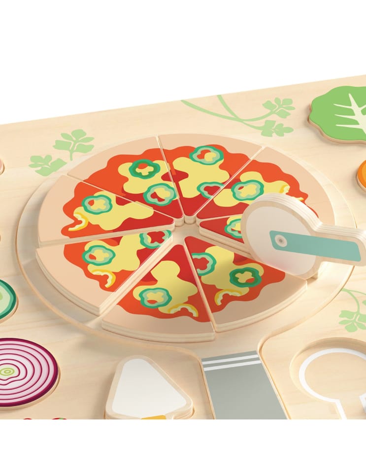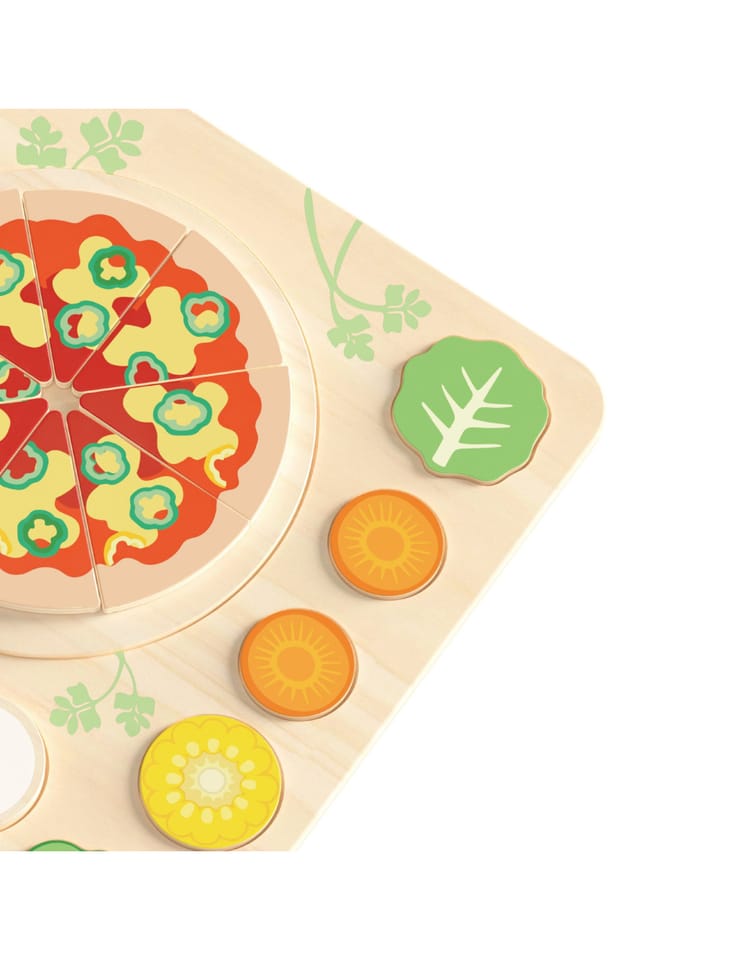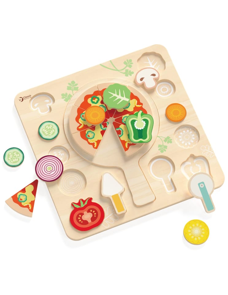 Drewniana układanka „Pizza Puzzle Board” marki Classic World to kolorowy zestaw 22 elementów, który zamienia zabawę w kreatywne gotowanie. Zestaw przeznaczony dla dzieci od 2 roku życia zawiera ruchome składniki, łopatkę i nóż — idealne do komponowania własnej pizzy i ćwiczenia precyzji. Produkt wykonano z gładkiego drewna, pomalowanego bezpiecznymi farbami, co sprawia, że zabawa jest przyjemna i trwała.