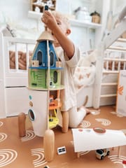 - - funkcja 2w1: zabawa konstrukcyjna (skręcanie elementów) i odgrywanie ról (domek dla figurek)