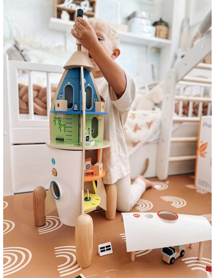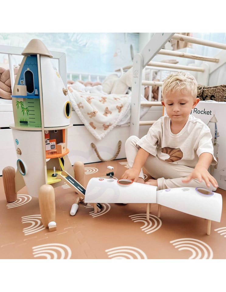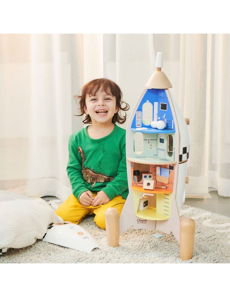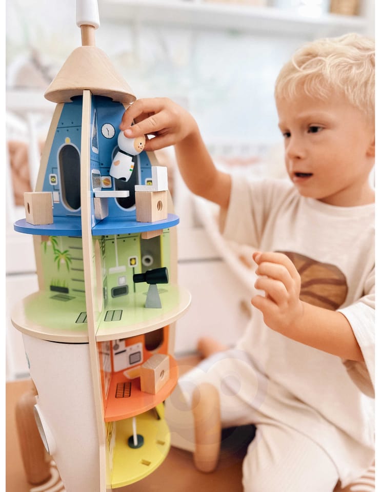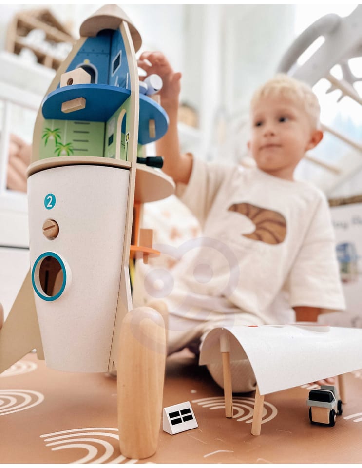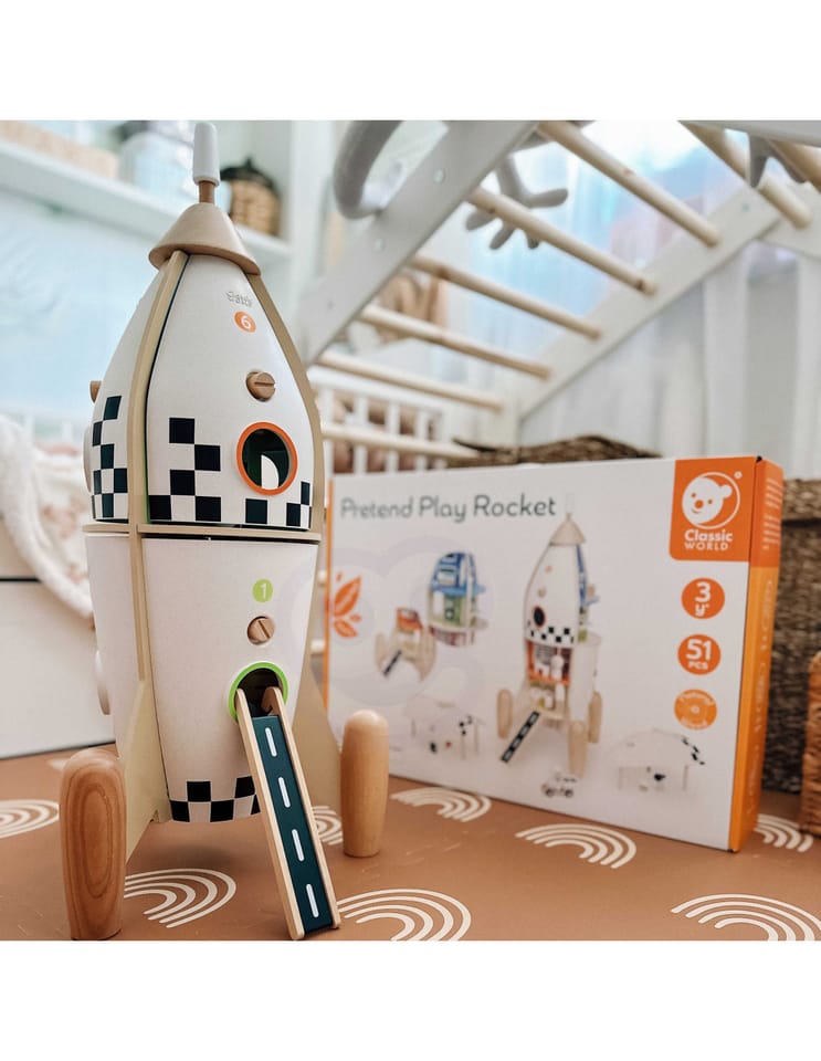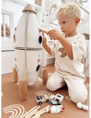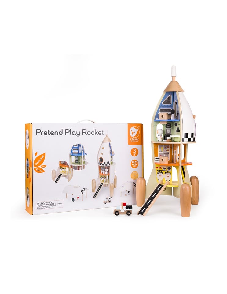 Zestaw Drewniana Rakieta Kosmiczna od marki Classic World to imponująca zabawka, która łączy w sobie radość z konstruowania i kreatywną zabawę w odgrywanie ról. Ten wielki statek kosmiczny pozwala dziecku na samodzielny montaż zewnętrznych paneli za pomocą śrub, a także budowanie bazy ekspedycyjnej z drewnianych patyczków. Wnętrze rakiety kryje aż 12 tematycznych pomieszczeń, takich jak sypialnia, sala operacyjna czy laboratorium, co zapewnia niekończące się możliwości tworzenia kosmicznych historii. To idealna propozycja dla małych odkrywców, którzy marzą o międzygalaktycznych podróżach.