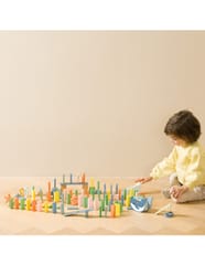 - - kolorowe klocki domina w różnych odcieniach (niebieski, zielony, różowy, naturalny)