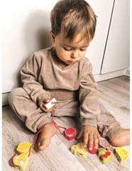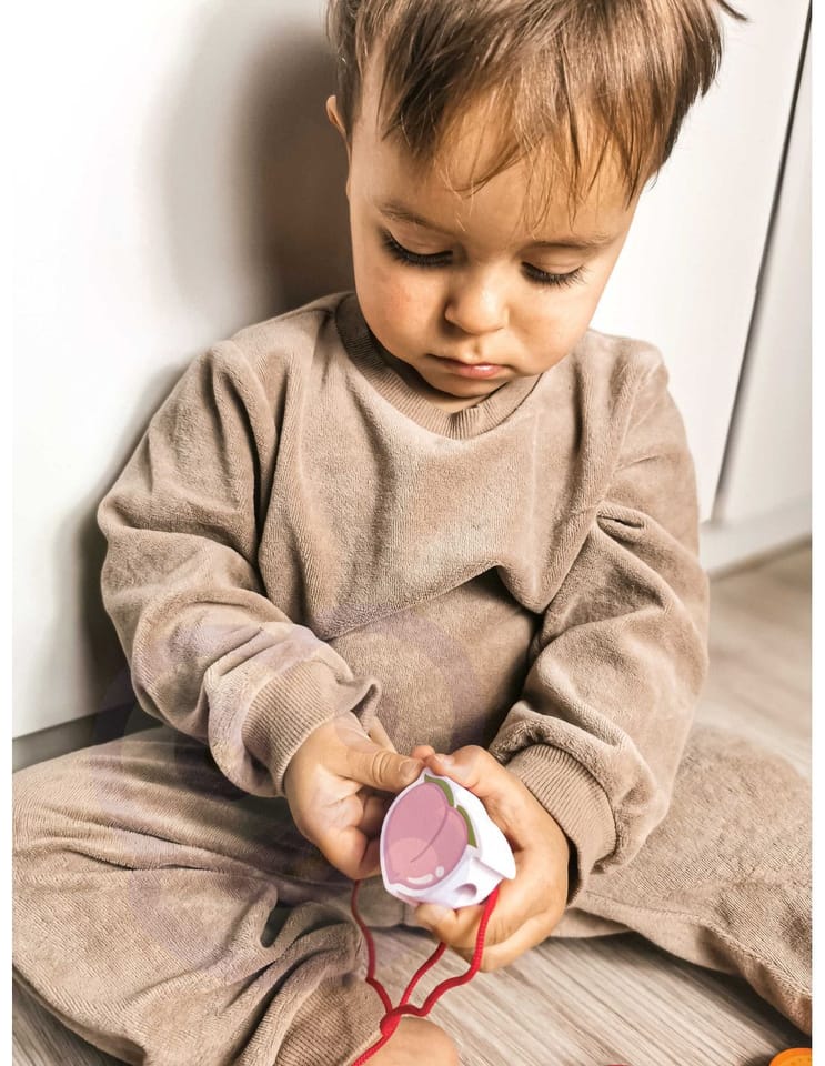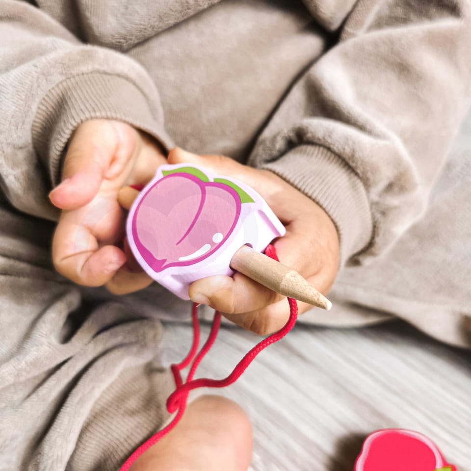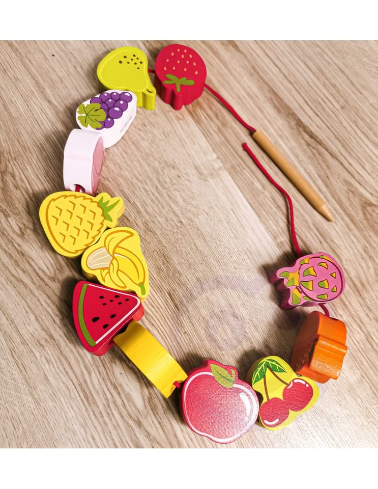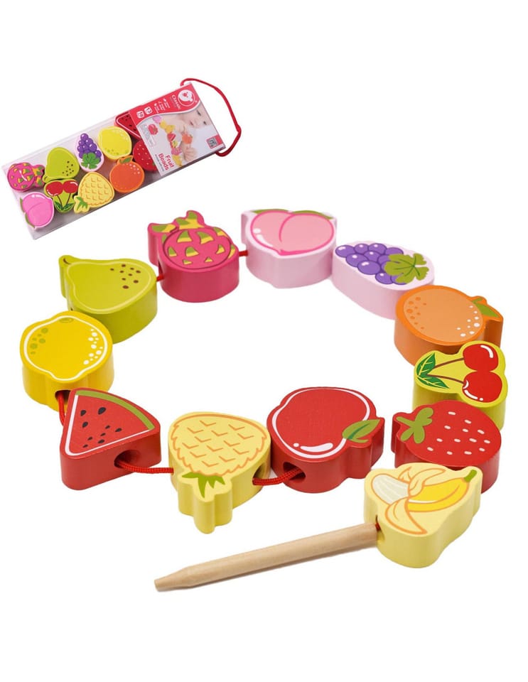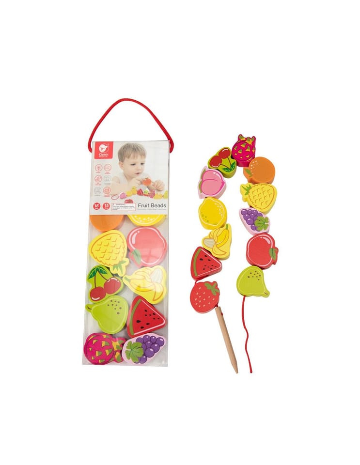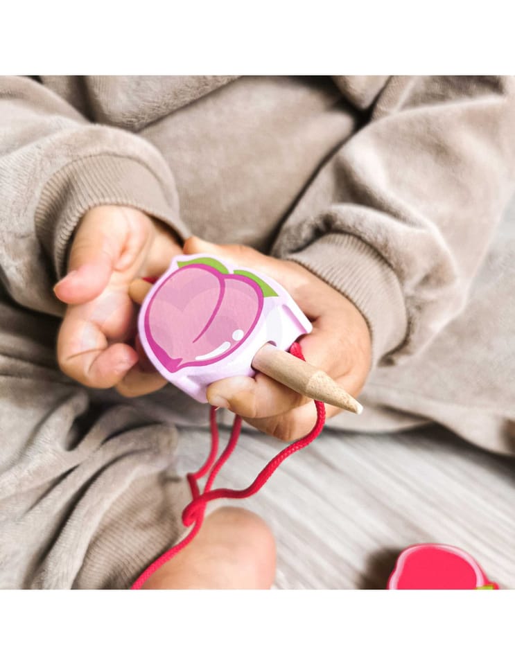 Drewniana nawlekanka z owocami od renomowanej marki Classic World to idealna zabawka dla twoich najmłodszych odkrywców. Zestaw składa się z 12 drewnianych klocków w kształcie owoców, które nawleka się na sznurek przez drewnianą igłę. Dzięki tej zabawce dziecko rozwinie swoje zdolności motoryczne i wzbogaci wyobraźnię. Zabawka ma też na celu nauczyć dziecko nazw owoców oraz ich kolory. Zestaw pobudzi ciekawość malucha, a także zapewni wielogodzinną zabawę – klocki można układać w dowolny sposób.