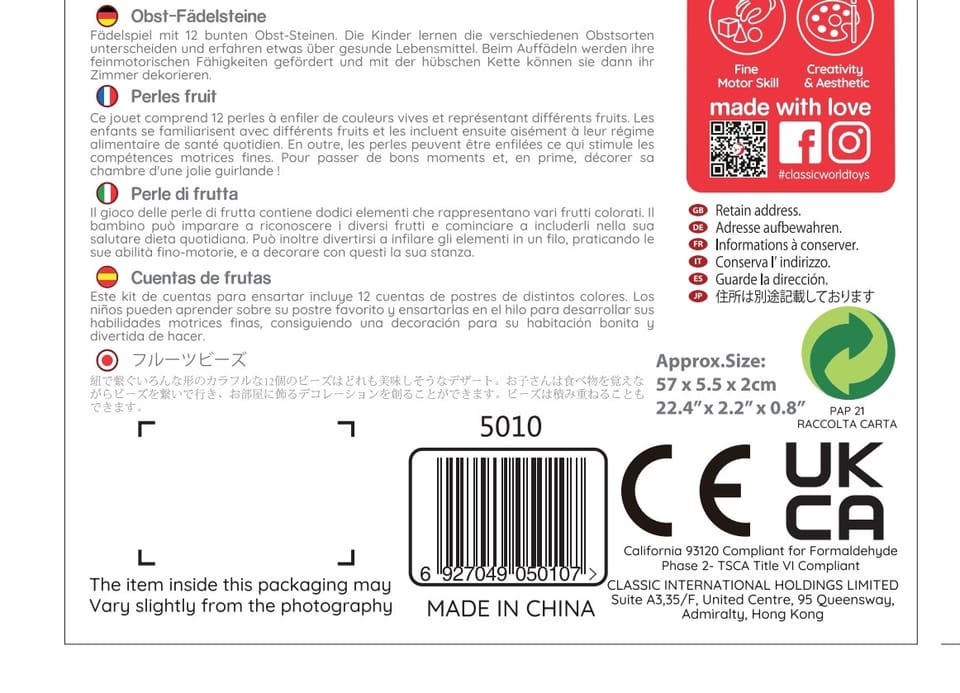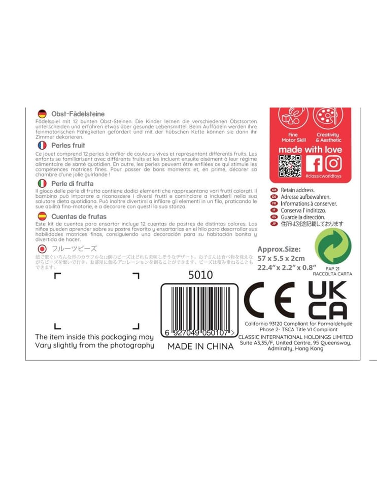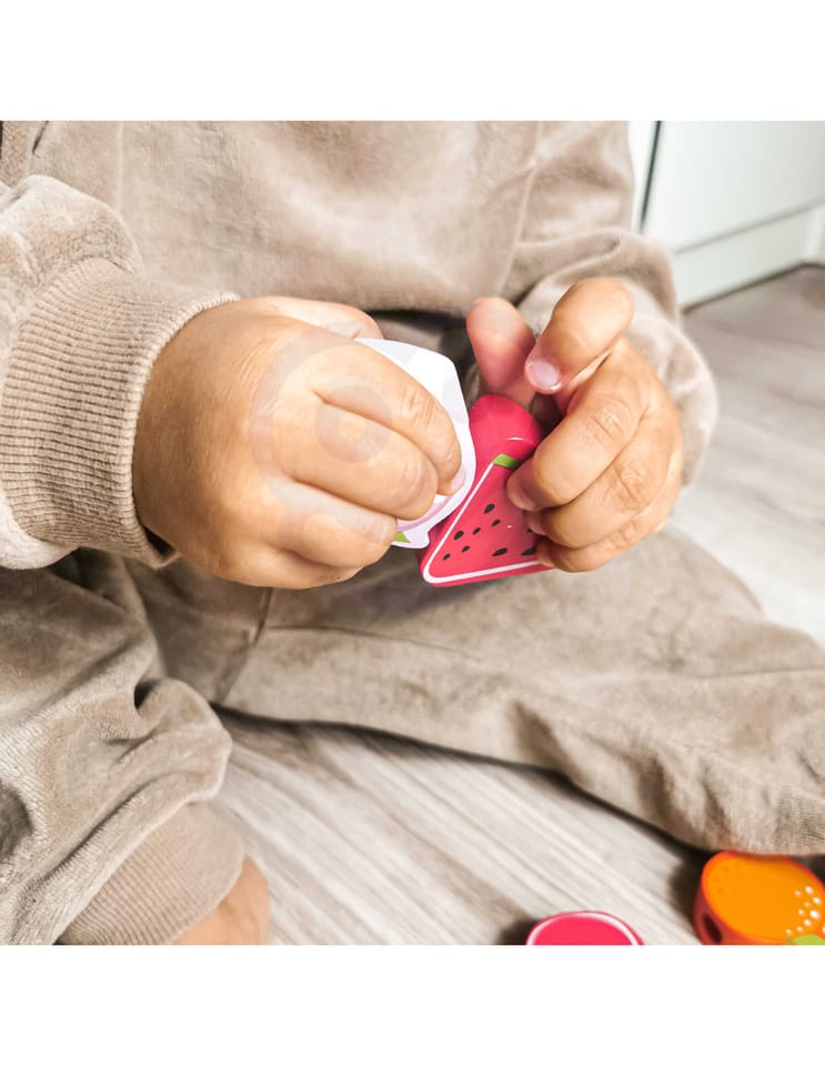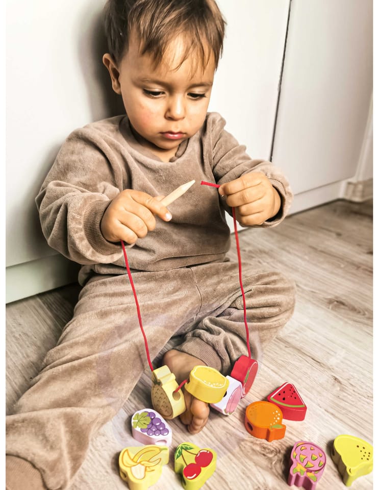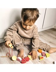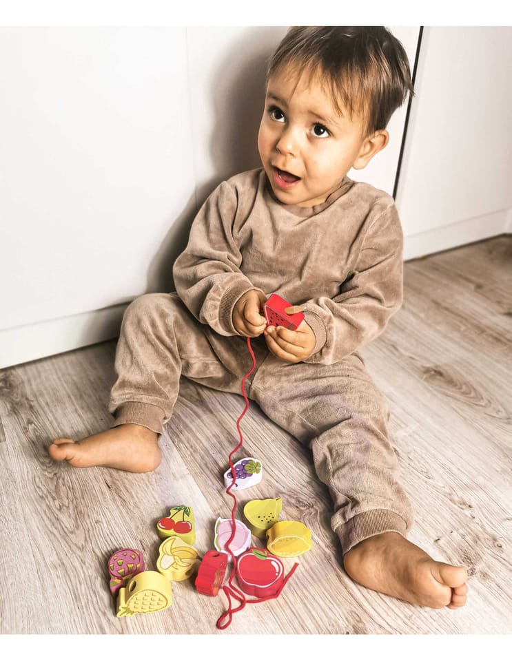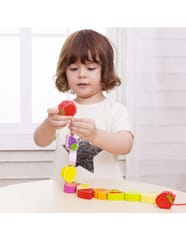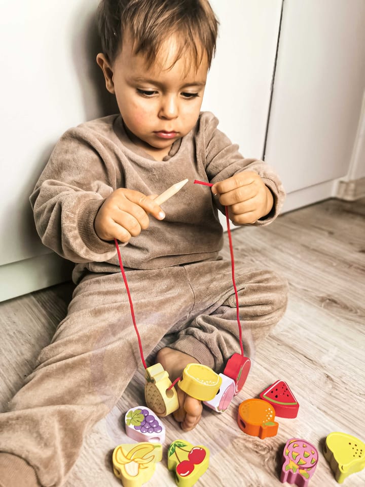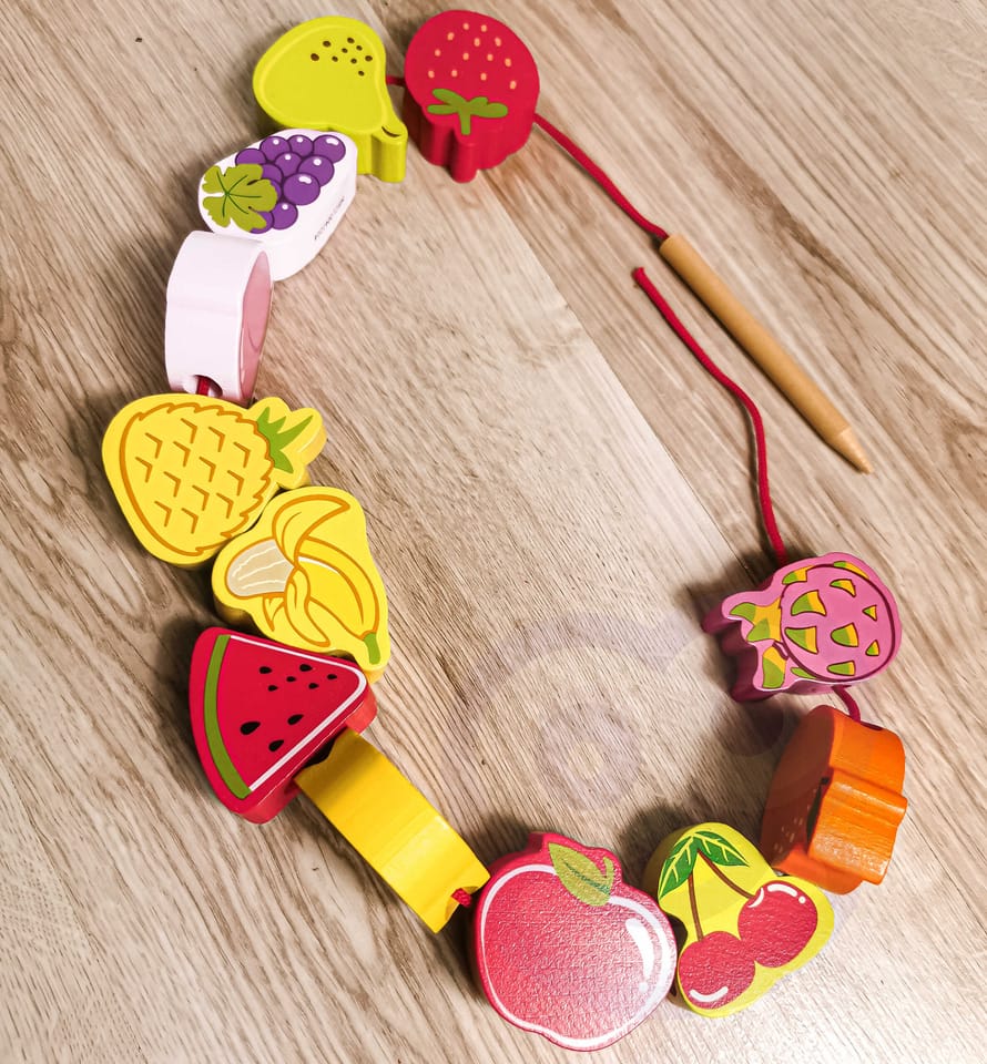 Drewniana nawlekanka z owocami od renomowanej marki Classic World to idealna zabawka dla twoich najmłodszych odkrywców. Zestaw składa się z 12 drewnianych klocków w kształcie owoców, które nawleka się na sznurek przez drewnianą igłę. Dzięki tej zabawce dziecko rozwinie swoje zdolności motoryczne i wzbogaci wyobraźnię. Zabawka ma też na celu nauczyć dziecko nazw owoców oraz ich kolory. Zestaw pobudzi ciekawość malucha, a także zapewni wielogodzinną zabawę – klocki można układać w dowolny sposób.