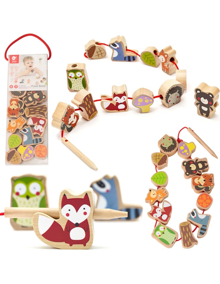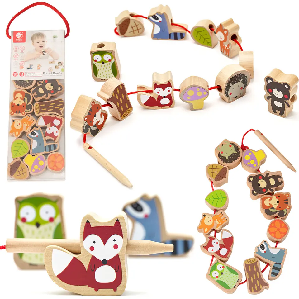 Nawlekanka drewniana od marki Classic World to edukacyjna zabawka dla dzieci powyżej 18. miesiąca życia. Składa się z 13 elementów w kształcie leśnych zwierząt i roślin, które maluch może nawlekać na sznurek za pomocą drewnianej igły. Wykonana z naturalnego drewna, gwarantuje bezpieczeństwo i trwałość. Idealna do rozwijania zdolności manualnych i koordynacji wzrokowo-ruchowej. Dzięki atrakcyjnym kolorom i kształtom, zabawka przyciąga uwagę i angażuje dziecko w kreatywną zabawę.