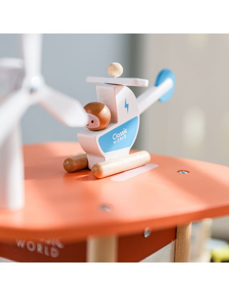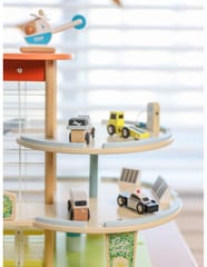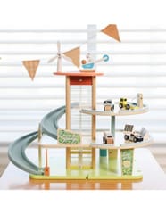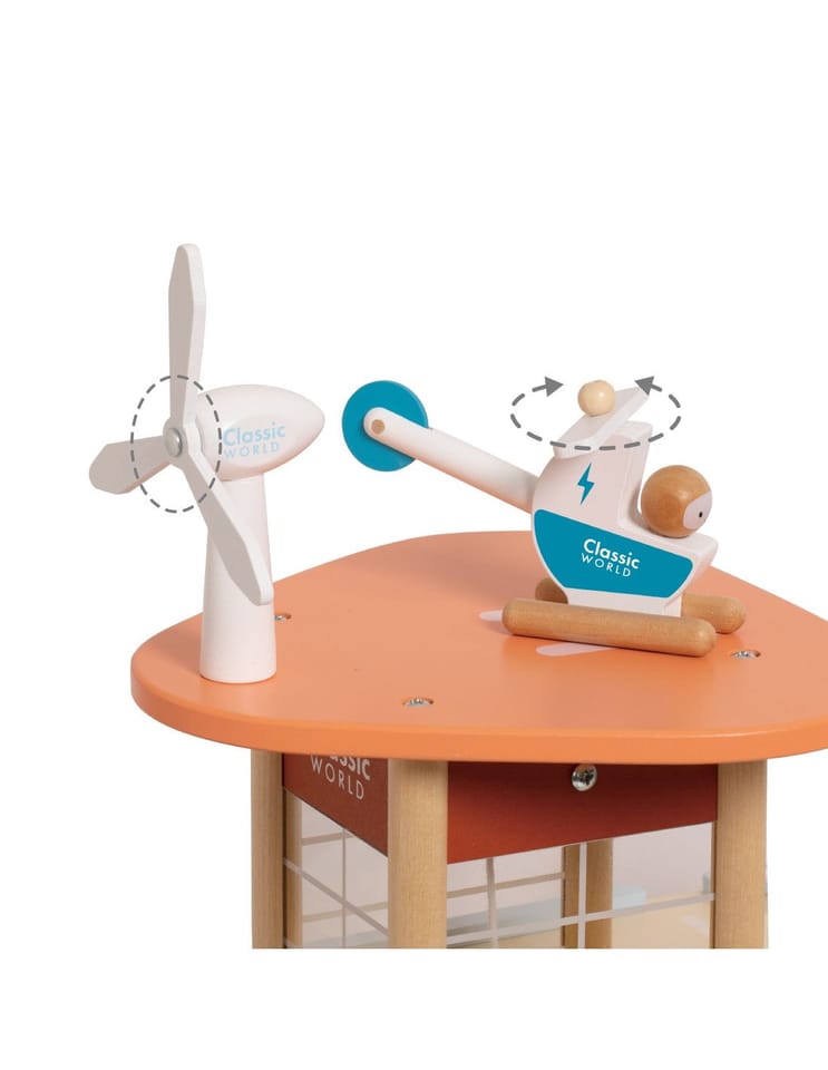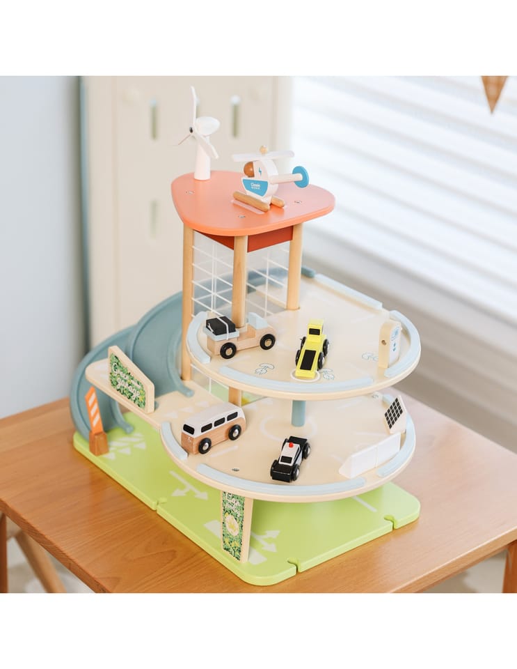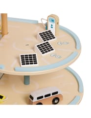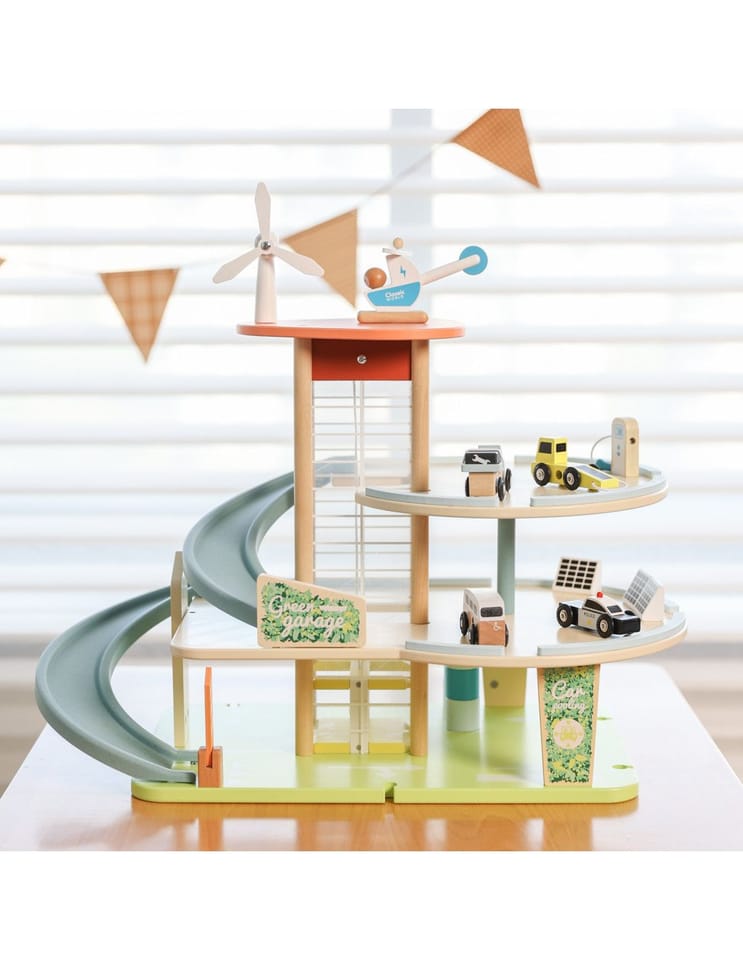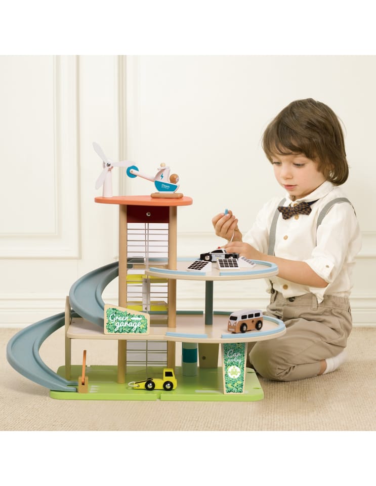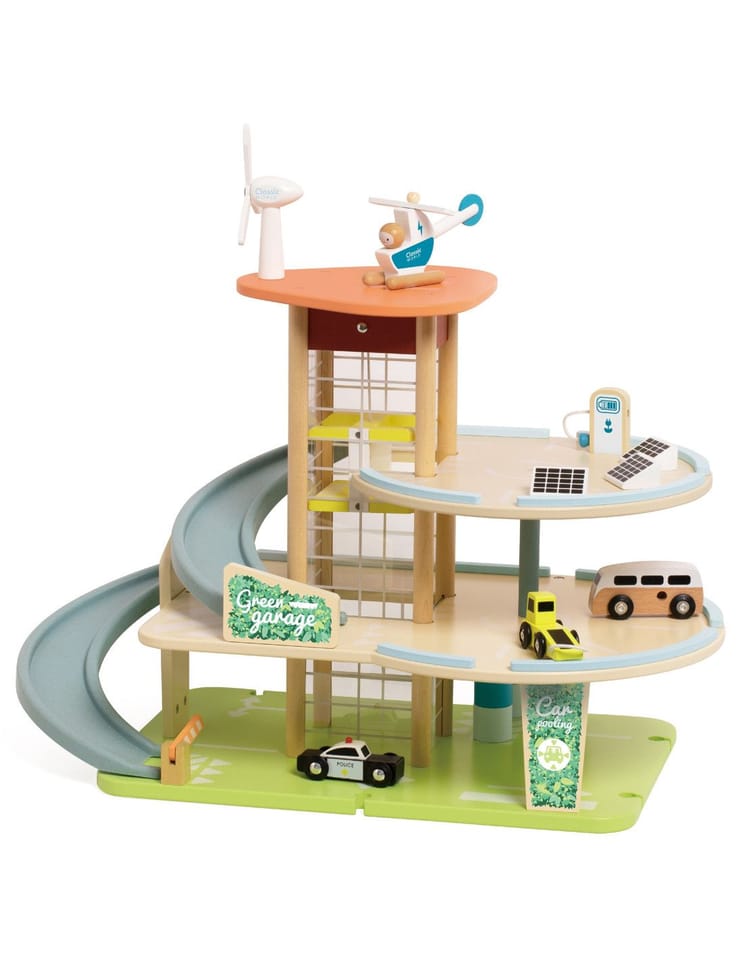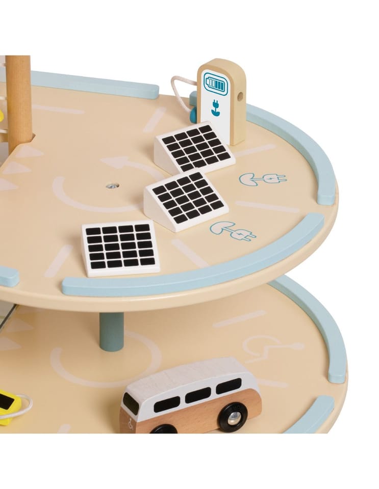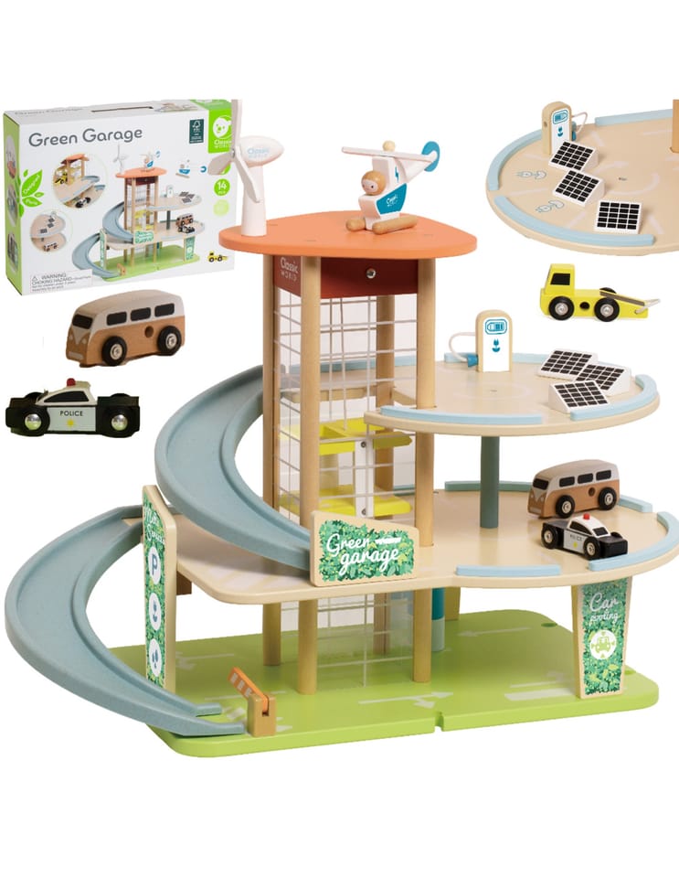 Drewniany Garaż 3 Poziomowy Eko Strefa z Windą od marki CLASSIC WORLD to niezwykła zabawka, która wprowadza dziecko w świat motoryzacji połączony z nowoczesną edukacją ekologiczną. Ten imponujący, wielopoziomowy parking wykonany z wysokiej jakości drewna, wyróżnia się dbałością o detale i funkcjonalnością, która zachwyci każdego małego fana samochodów. Zestaw nie tylko dostarcza rozrywki dzięki ruchomej windzie i szybkim zjazdom, ale także uczy o odnawialnych źródłach energii poprzez zabawę elementami takimi jak panele fotowoltaiczne czy turbina wiatrowa.