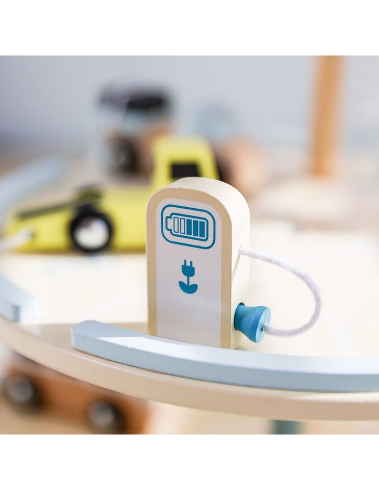 - - zawiera edukacyjne elementy eko: stację ładowania aut elektrycznych, wiatrak i panele słoneczne