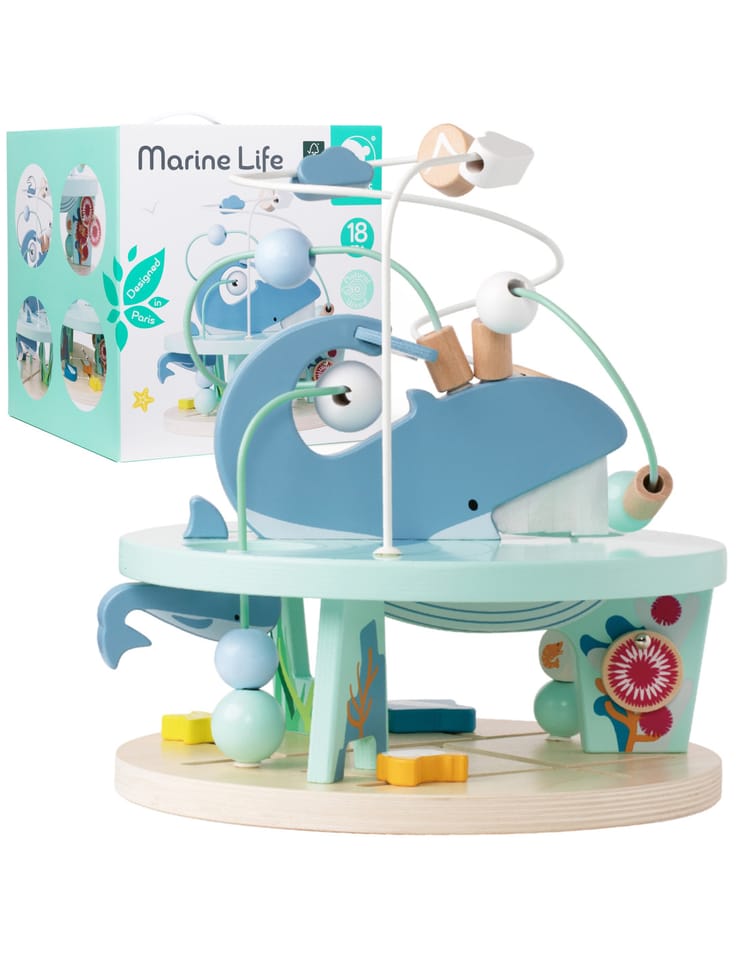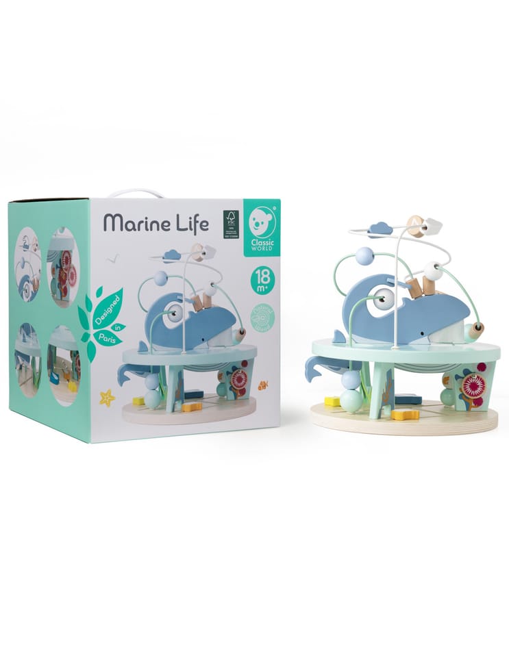 Drewniany edukacyjny labirynt-przeplatanka Classic World! To znakomita zabawka Montessori dla najmłodszych, łącząca elementy labiryntu z manipulacją koralikami. Dziecko przesuwa koraliki po zakrzywionych torach, ćwicząc zręczność i precyzję. Jasne, pastelowe kolory i drewniana konstrukcja przyciągają uwagę i bezpiecznie integrują się z otoczeniem pokoju dziecięcego. Dzięki monotonnym, powolnym ruchom dziecko uczy się cierpliwości i skupienia. Idealna propozycja dla maluchów od ok. 18 miesięcy, rozwijająca wiele umiejętności przez zabawę.