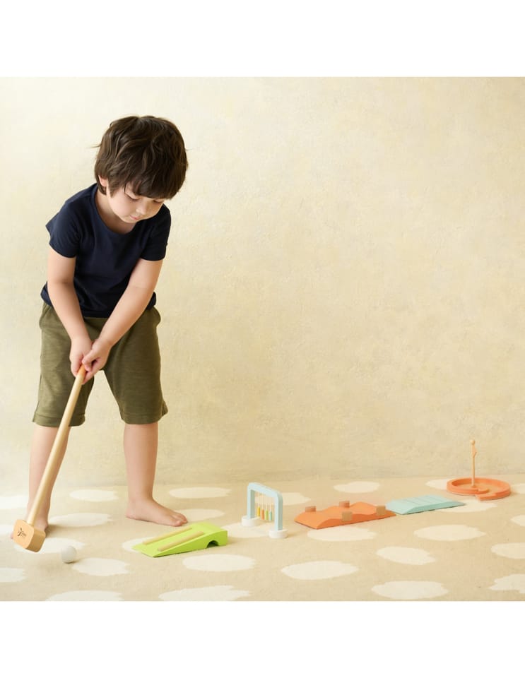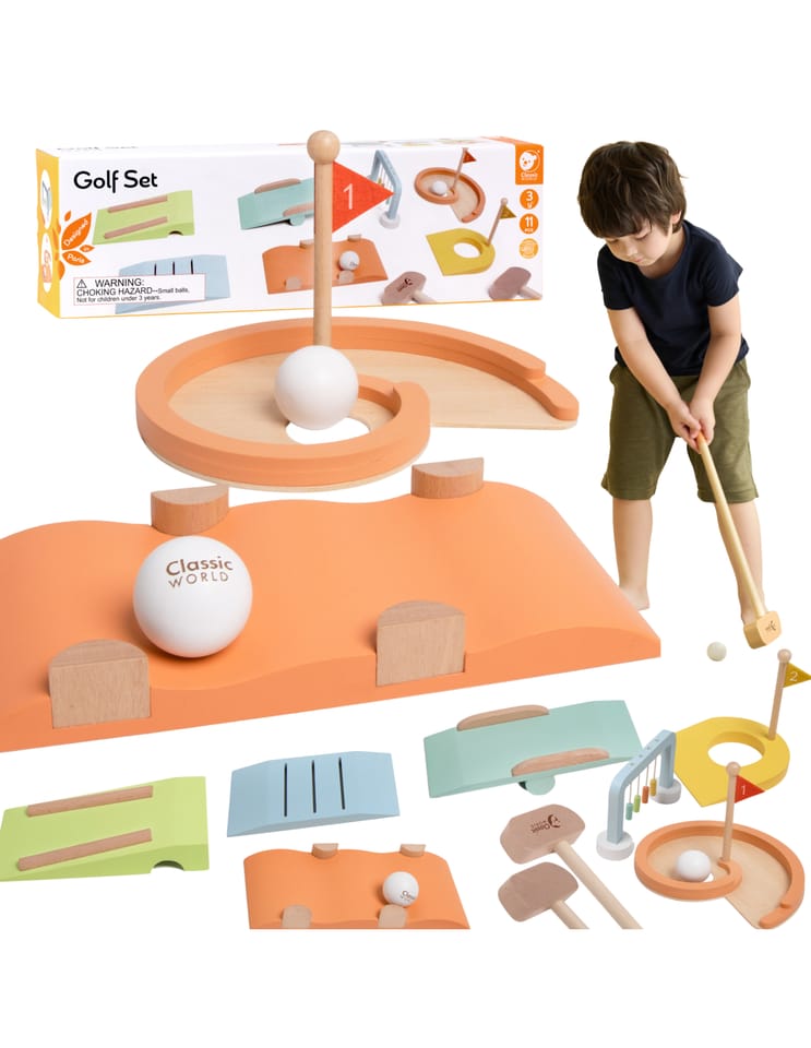 Odkryjcie pasjonujący świat golfa w domowym zaciszu lub ogrodzie dzięki marce Classic World! Wykonany z ekologicznego, trwałego drewna, jest w 100% bezpieczny i odporny na zmienne warunki pogodowe, co gwarantuje długą żywotność. Ta gra zręcznościowa dla dzieci 3+ zapewnia godziny aktywnej, pomysłowej zabawy, idealnej dla całej rodziny. Mini golf doskonale ćwiczy precyzję, zręczność oraz kluczową koordynację ręka-oko. Dzięki 5 unikalnym przeszkodom i łatwej do rozstawienia konstrukcji, każda runda staje się wyjątkowym i rozwijającym wyzwaniem.
