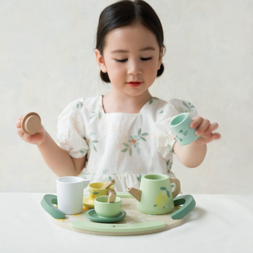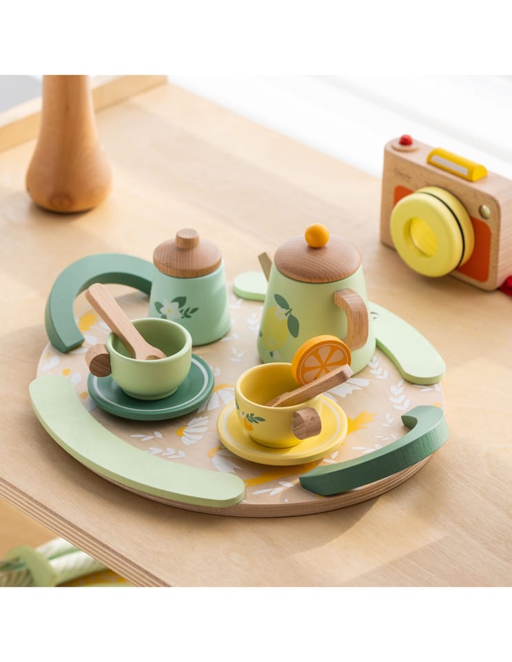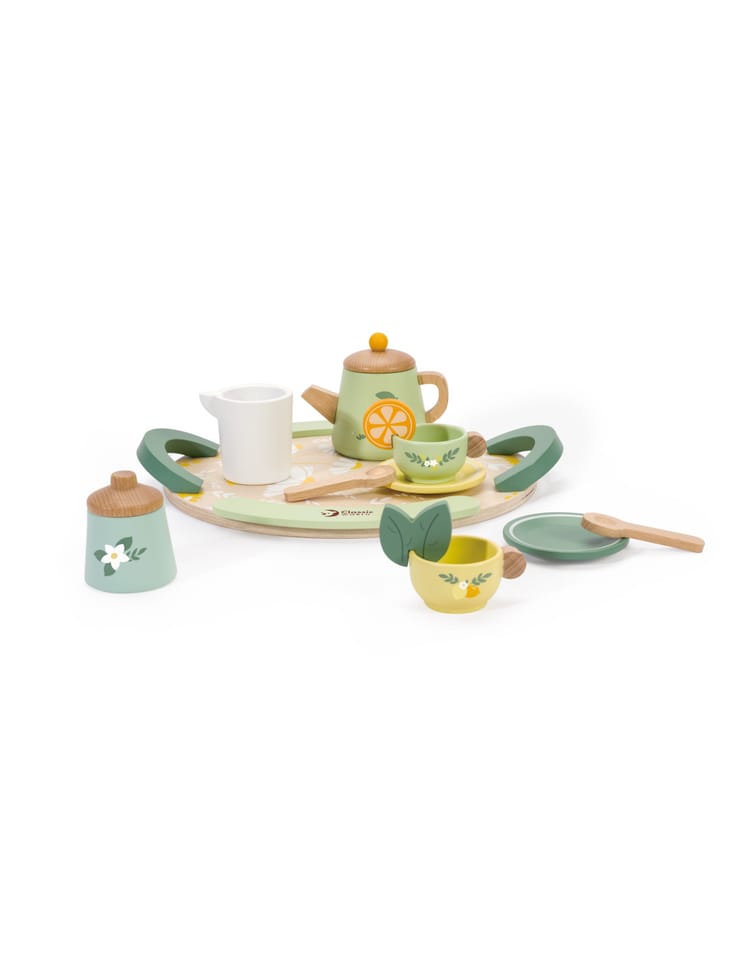 Zestaw do Herbaty od firmy Classic World to świetny pomysł na długie godziny zabawy dla twojego malucha. Twoja pociecha zaskoczy Cię nie raz, serwując pyszną herbatę. Zamień podwieczorek w piękny rytuał dzięki różnym akcesoriom, w tym: dwie filiżanki w różnych kolorach,czajniczek i tacka w kwiatki oraz różne dodatki do herbaty. Piękna pastelowa kolorystyka dodatkowo zachęci dziecko do zabawy. Zestaw został wykonany z solidnego drewna, aby Twój maluch mógł bezpiecznie oddać się serwowaniu przepysznej herbaty.Charakterystyka: