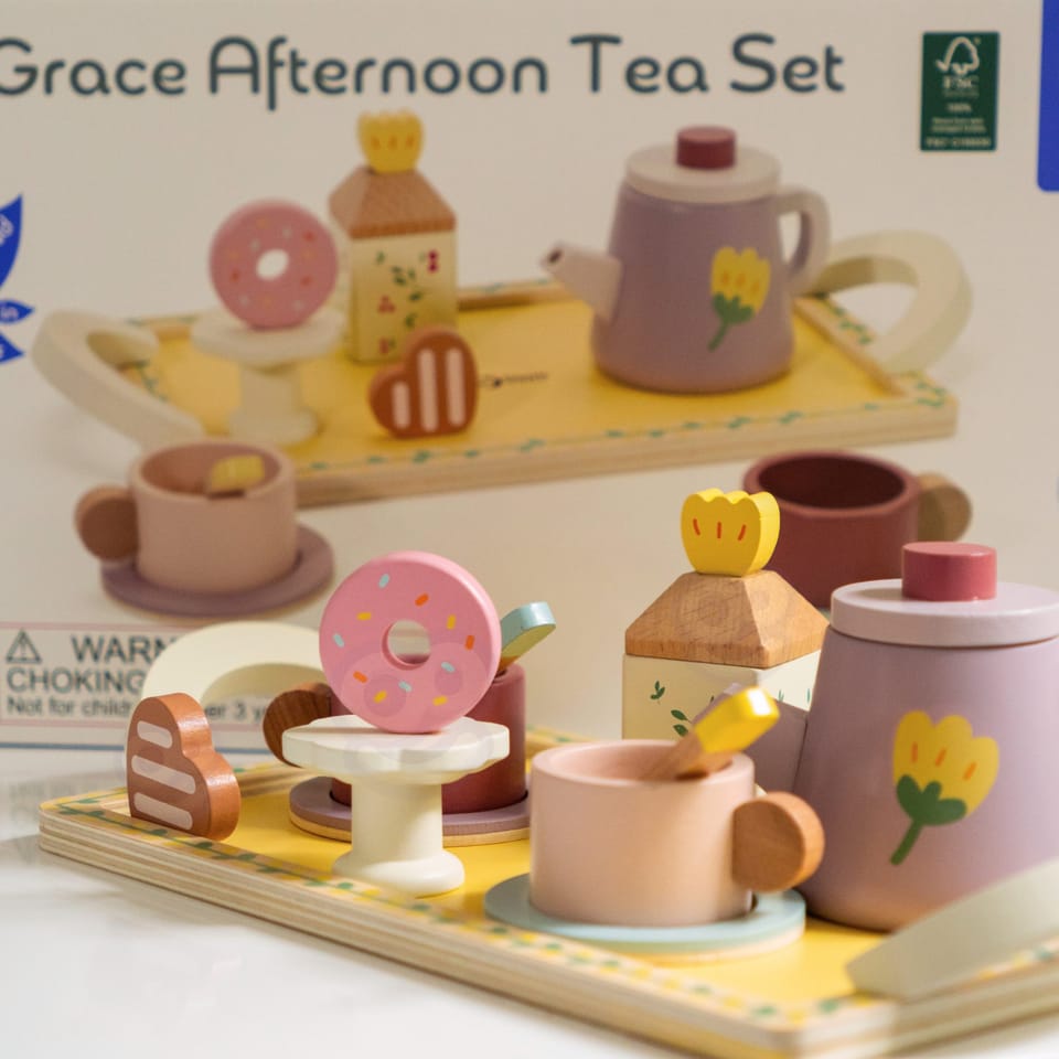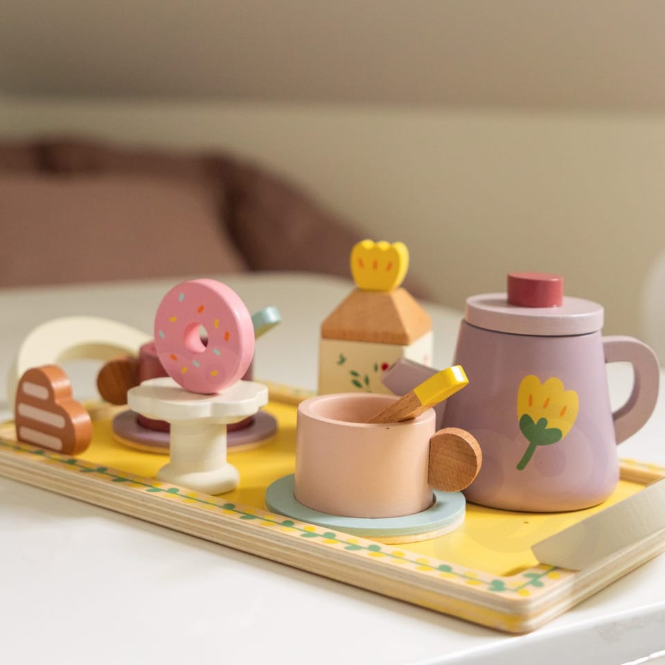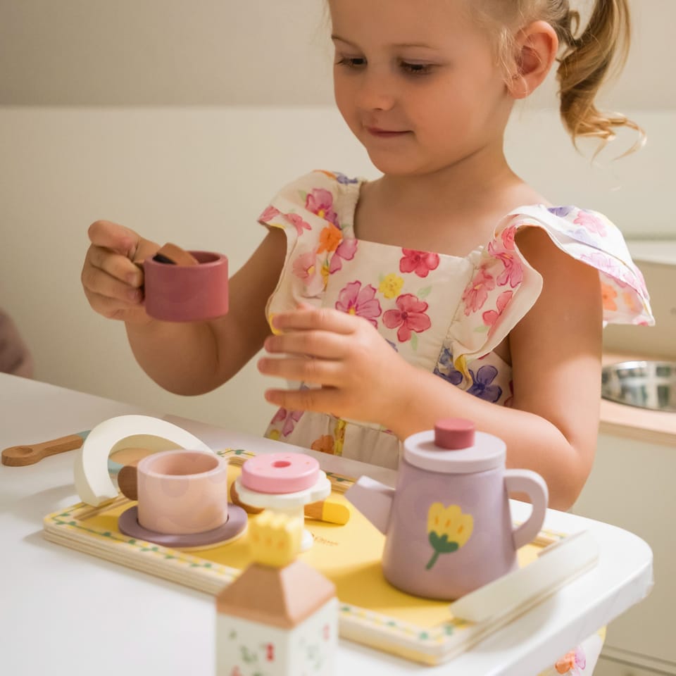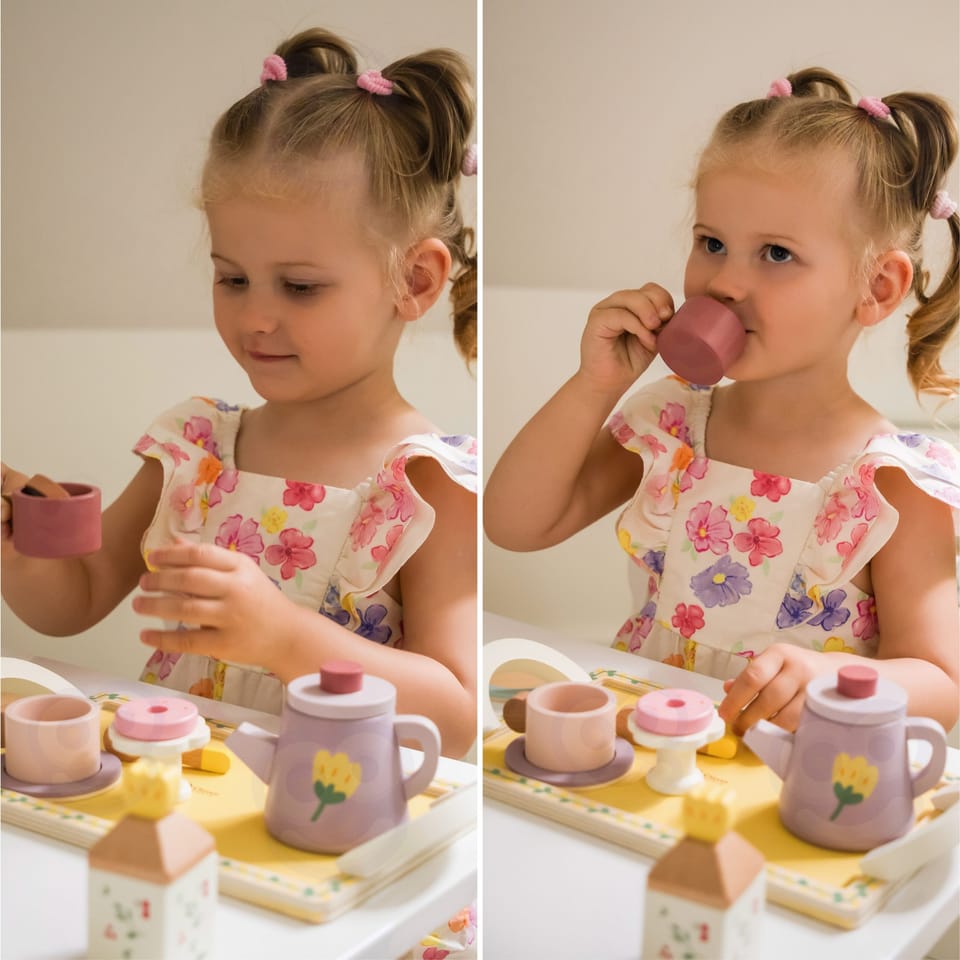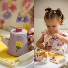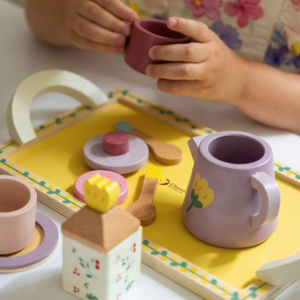 Drewniany zestaw do herbaty i deserów od CLASSIC WORLD, to świetna propozycja dla dzieci które chcą wcielać się w różne role w życiu codziennym. Urocze pastelowe kolory zachwycą Twoje dziecko a akcesoria t.j. dzbanek na herbatkę, filiżanki oraz desery pobudzą wyobraźnię i kreatywność Twojego malucha.Drewniany zestaw do herbaty i deserów sprawi, że dziecko będzie mogło przyjmować gości i serwować herbatę oraz desery całej rodzinie. Nauczy dobrych manier i umiejętności dzielenia się z innymi podczas zabawy.