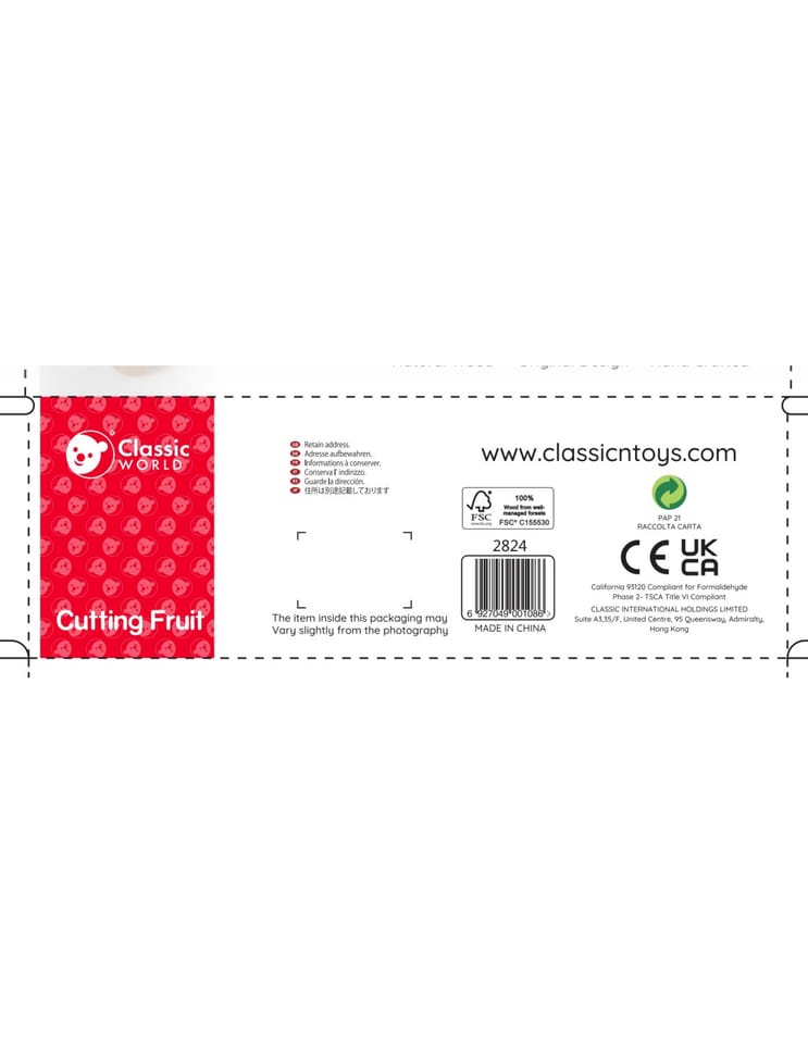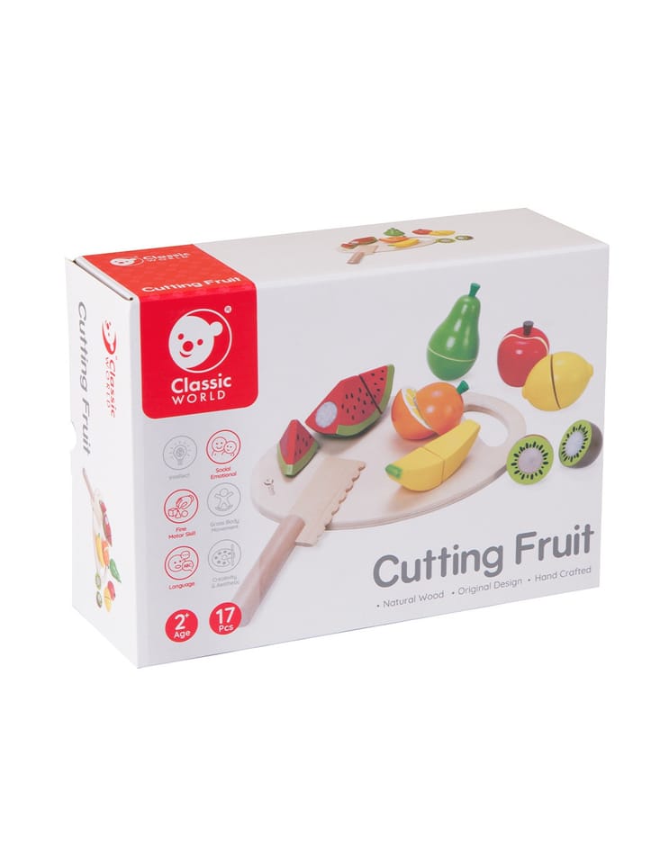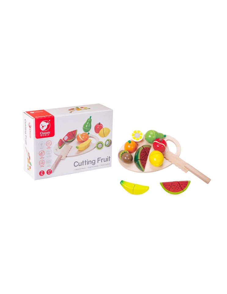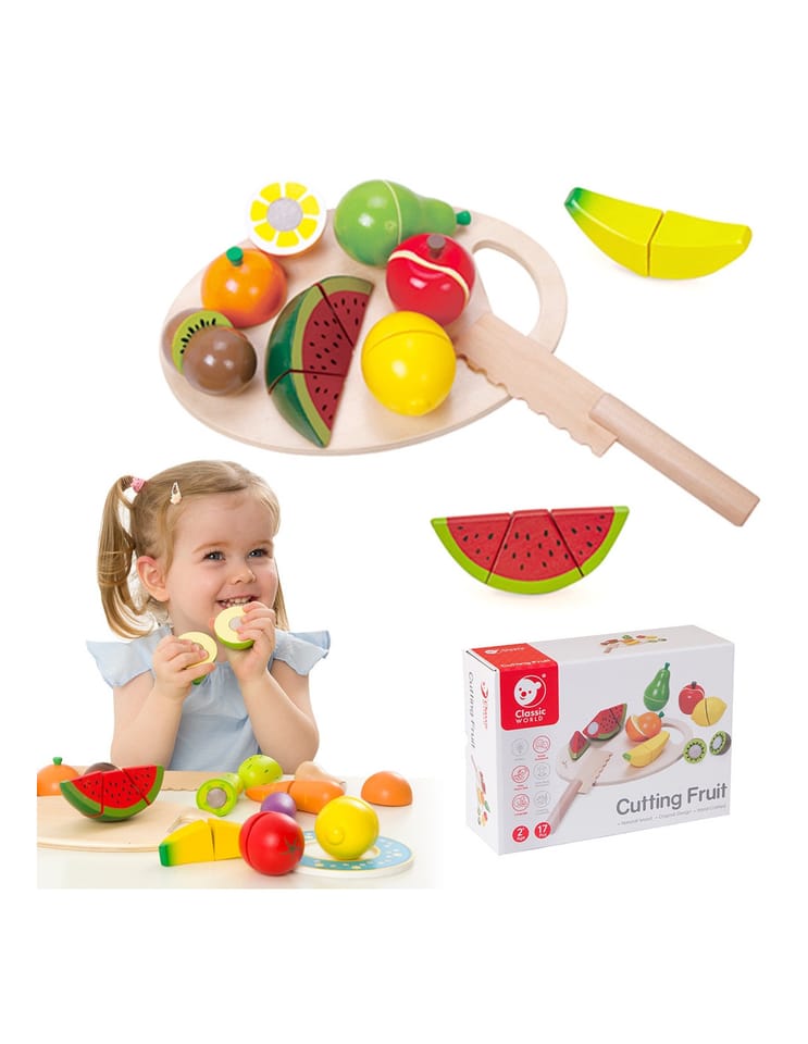 Drewniane Owoce do krojenia na tacy cenionego producenta zabawek Classic World dla dzieci od 3 roku życia idealne do przedszkola, jak i do domu. Dziecko będzie mogło wykonywać czynności z życia codziennego. Zabawka może być wykorzystywana również jako układanka. Zestaw pozwoli na rozwijanie się różnych umiejętności przydatnych w późniejszym życiu. Zabawka jest wielofunkcyjna dzięki czemu dziecko może bawić się na różne sposoby. Nasza pociecha wcięli się w role kasjera na własnym straganie albo zabawi w dom. Wszystko zależy od kreatywności dziecka.