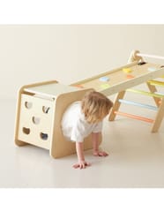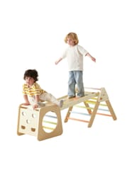 Drewniany zestaw wspinaczkowy trójkąt Montessori 5-w-1 od Classic World to wyjątkowa propozycja dla dzieci, które uwielbiają aktywną zabawę, ruch i rozwijanie swoich zdolności fizycznych! Ten pięknie zaprojektowany zestaw to nie tylko zabawka, ale także narzędzie wspierające rozwój motoryki, równowagi i koordynacji. Wykonany z solidnych, gładko wykończonych elementów drewnianych, stanowi bezpieczną przestrzeń do wspinania się, zjeżdżania i odkrywania własnych możliwości ruchowych. Zestaw może służyć zarówno jako plac zabaw jak i siłownia, pełni aż 5 funkcji aktywności w jednym produkcie! Może pełnić rolę drabinki, zjeżdżalni, mostka, tunelu i toru przeszkód. Dzięki składanej konstrukcji i lekkiej formie można go łatwo przenosić i dopasowywać do dostępnej przestrzeni – zarówno w domu, jak i w przedszkolu czy sali zabaw. Jego uniwersalny, naturalny wygląd z pastelowymi akcentami sprawia, że doskonale komponuje się z każdym wnętrzem, zachęcając maluchy do codziennej aktywności i ruchu poprzez zabawę.