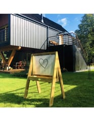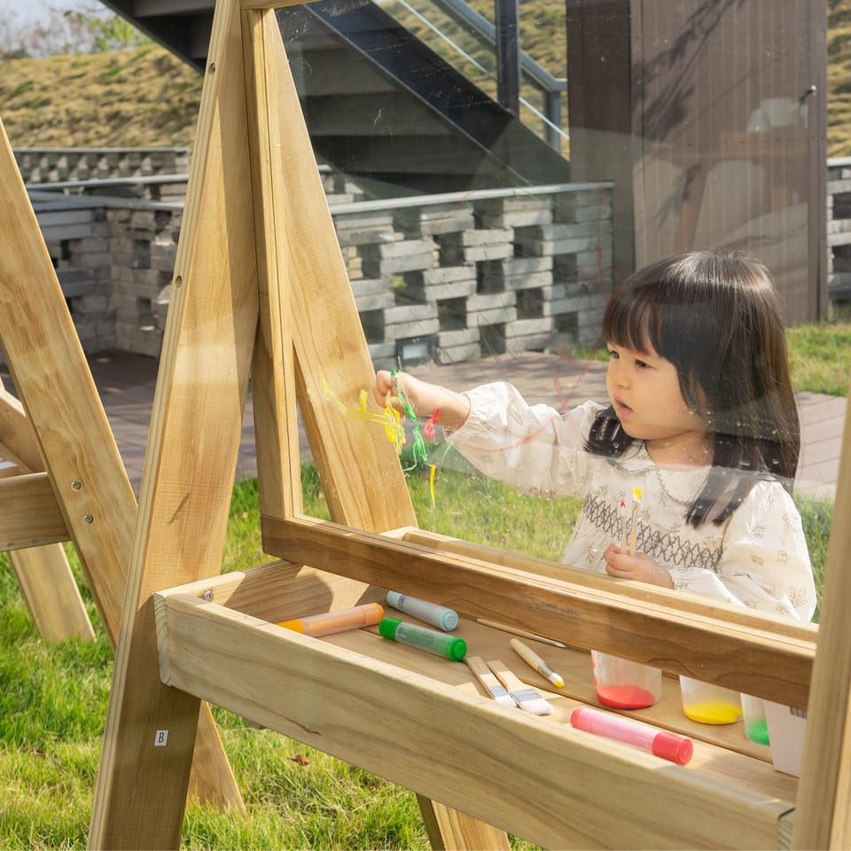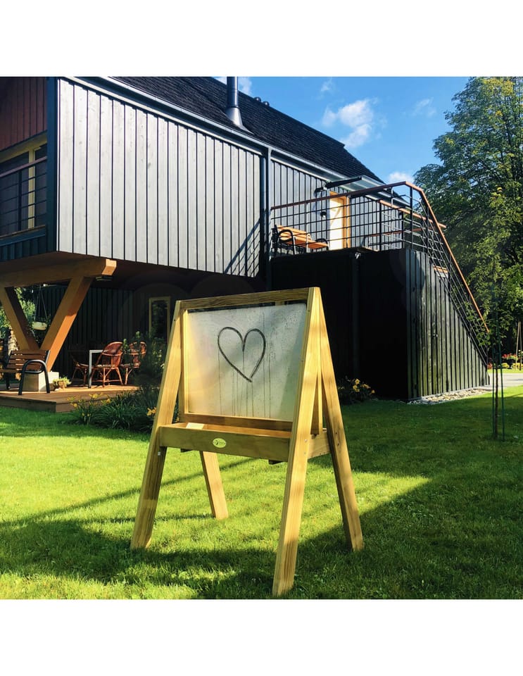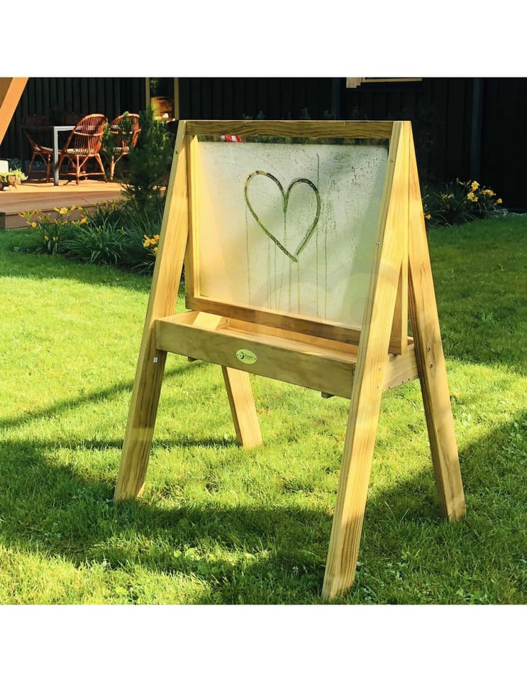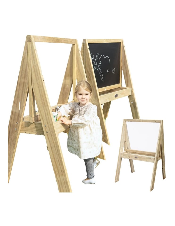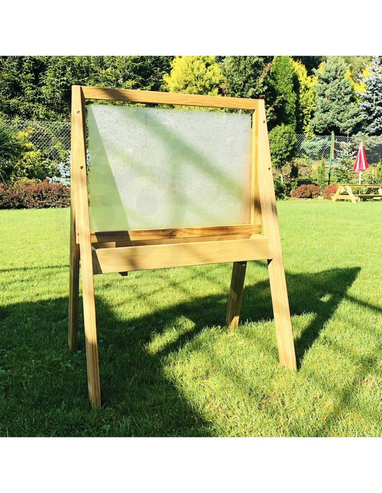 Duża drewniana Sztaluga dla wszystkich początkujących małych artystów, tablica renomowanej marki Classic World jest świetnym prezentem. Idealne do doskonalenia umiejętności motorycznych, ćwiczenia rysowania, malowania i ćwiczenia pisania liter. Produkt jest wyprodukowany z wysokiej jakości drewna, pomalowany nietoksycznym impregnatem, w pełni bezpiecznym dla dzieci. Tablica buduje umiejętności motoryczne, wzmacnia kreatywność dziecka. Solidna, drewniana konstrukcja zapewnia dłuższą żywotność produktu. Sztaluga posiada dwustronną pleksę, która daje możliwość malowania po obu stronach. Na półce pod tablicą znajduje się pojemnik, do którego można wstawić farby, w celu ułatwienia malowania.