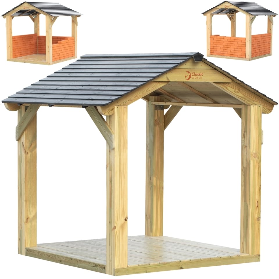 Domek Altana od renomowanej marki Classic World to idealne dopełnienie placu zabaw! Produkt jest wyprodukowany z wysokiej jakości drewna, pomalowany nie toksycznym impregnatem, w pełni bezpiecznym dla dzieci. Świetną zabawą może być układanie ścian domu. Produkt wysokiej jakości!