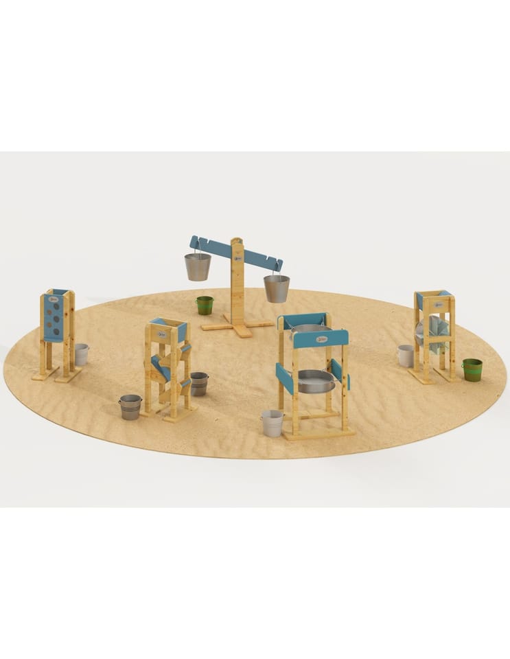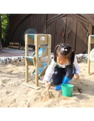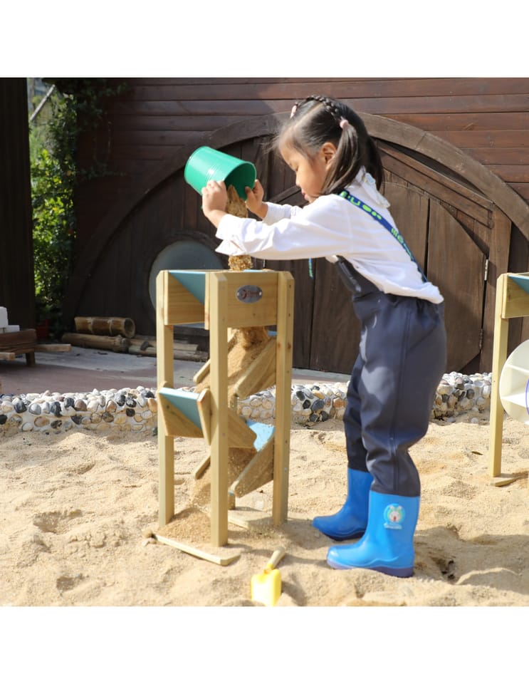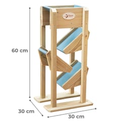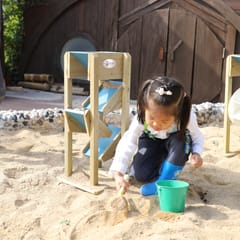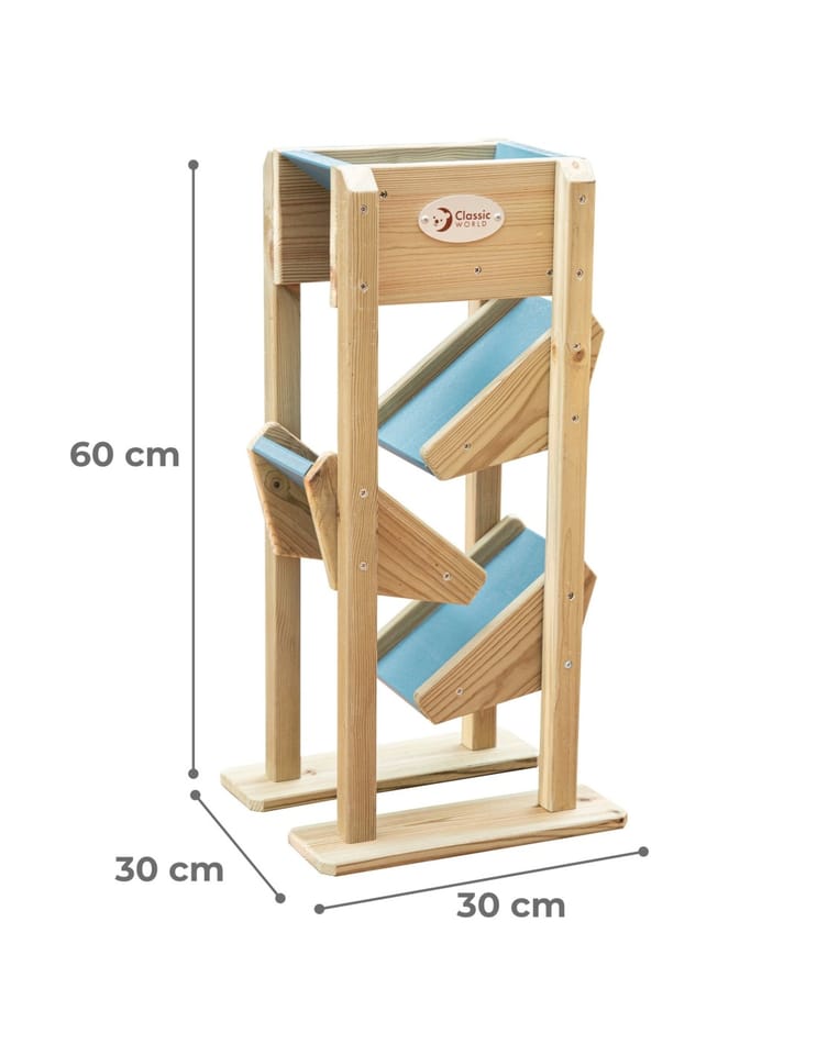 Drewniana Zjeżdżalnia Na Piasek od marki CLASSIC WORLD to dobrej jakości zabawka, która idealnie dopełni piaskownicę twojego dziecka, ale także place zabaw w placówkach edukacyjnych. Składa się ona z lejka umieszczonego na samej górze, do którego dziecko wsypuje piasek, który następnie po 3 małych zjeżdżalniach zlatuje na dół. Używanie tej drewnianej zjeżdżalni to świetna zabawa sensoryczna dla dziecka, która dobrze wpływa na małą motorykę.