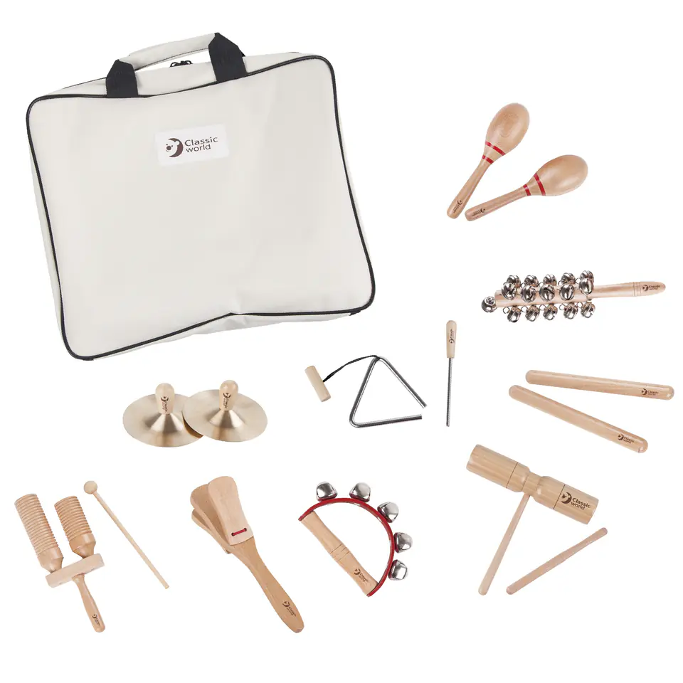 Zestaw Instrumentów od renomowanej marki Classic World to idealny produkt dla twojego dziecka. Zabawka pomoże ćwiczyć zdolności manualne i słuchowe twojej pociechy oraz wzmocni naturalne poczucie rytmu. Zestaw zawiera 9 instrumentów muzycznych, które będą nie odłącznym elementem codziennej zabawy. Idealny produkt do zabrania w podróż, dzięki temu, że jest zapakowane w poręczną torbę.