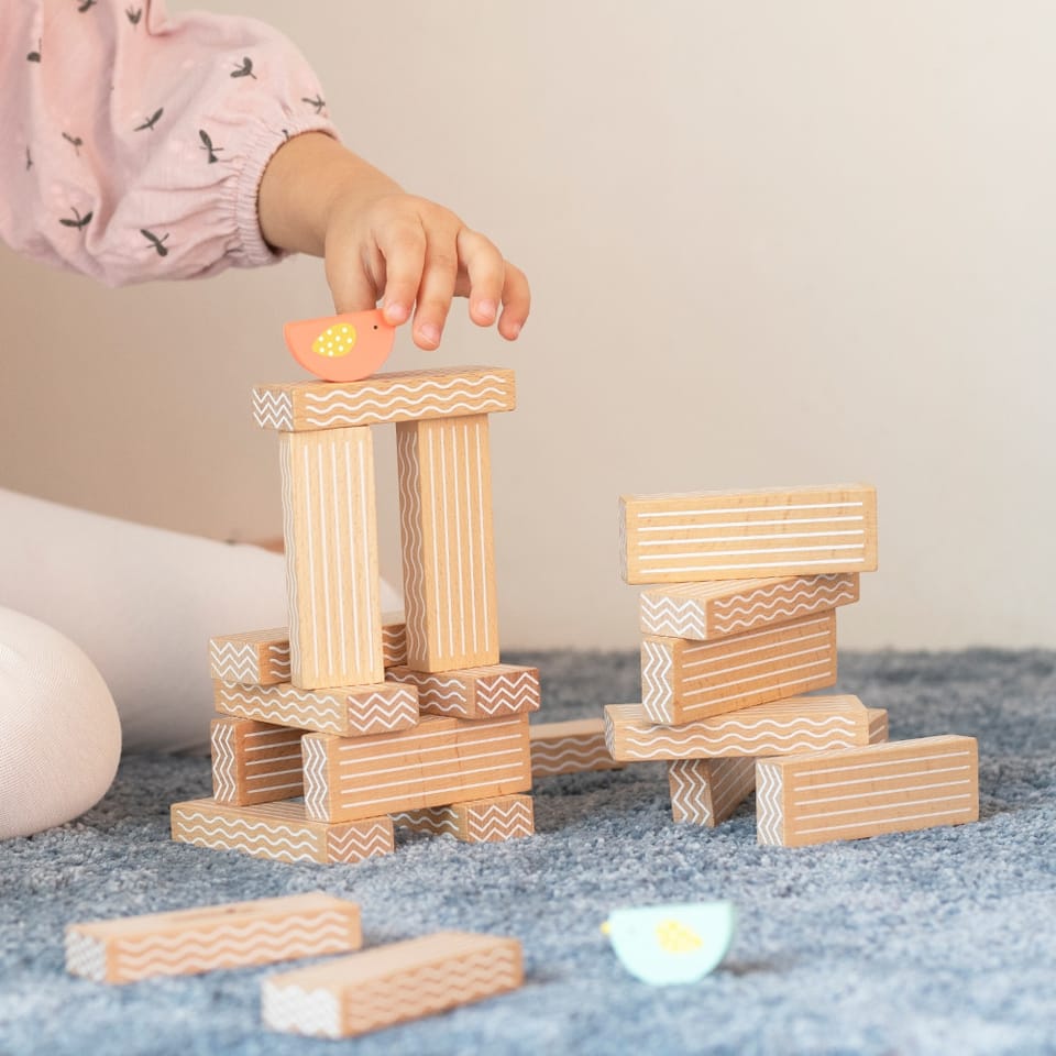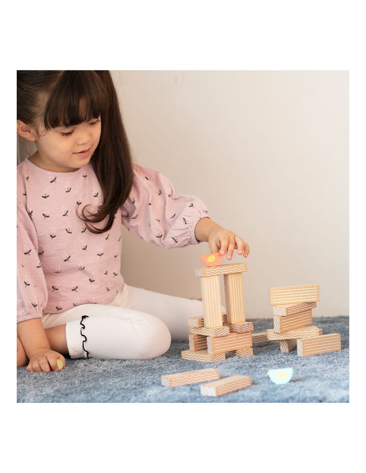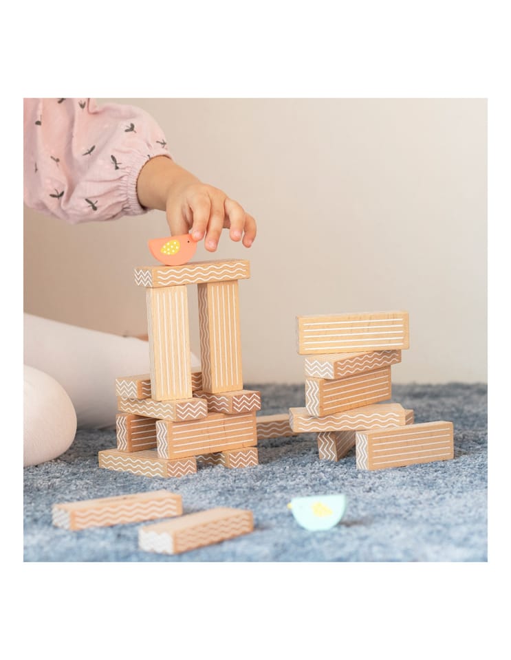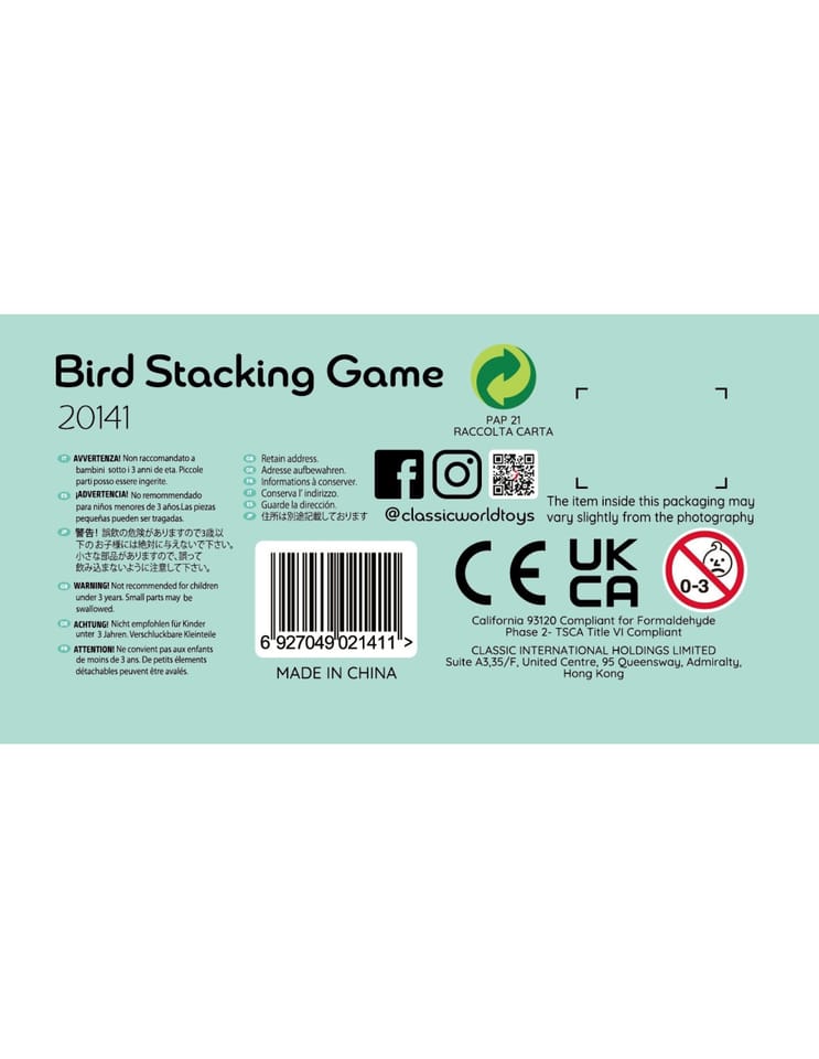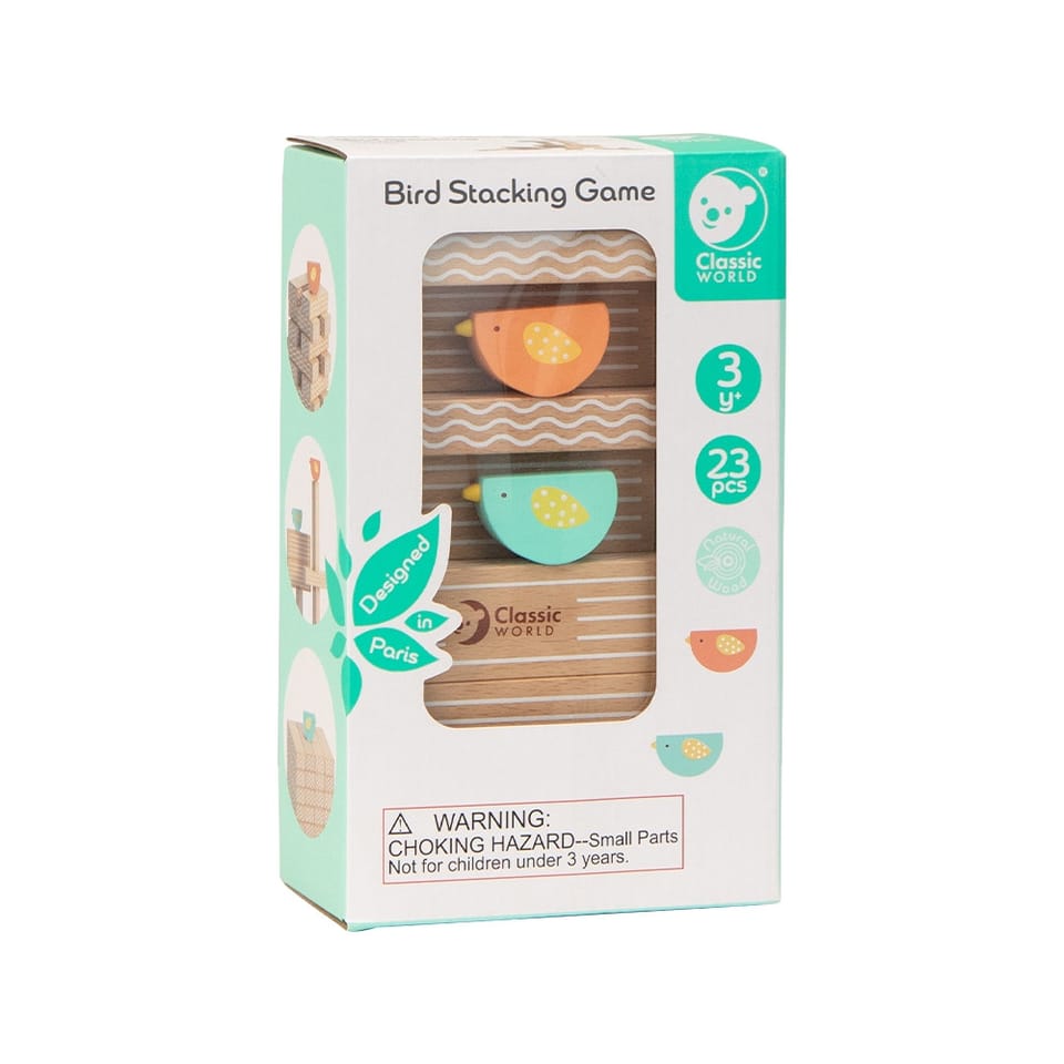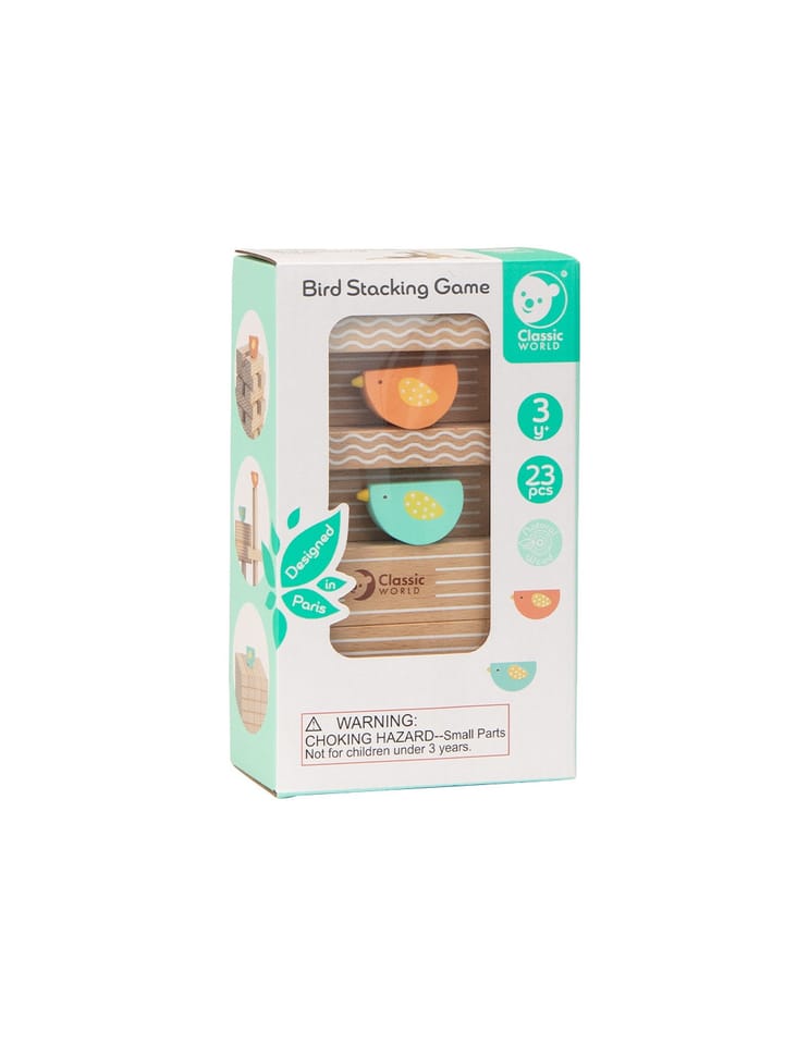 - - w zestawie: 20 klocków, 2x ptaki oraz kostkę do gry.