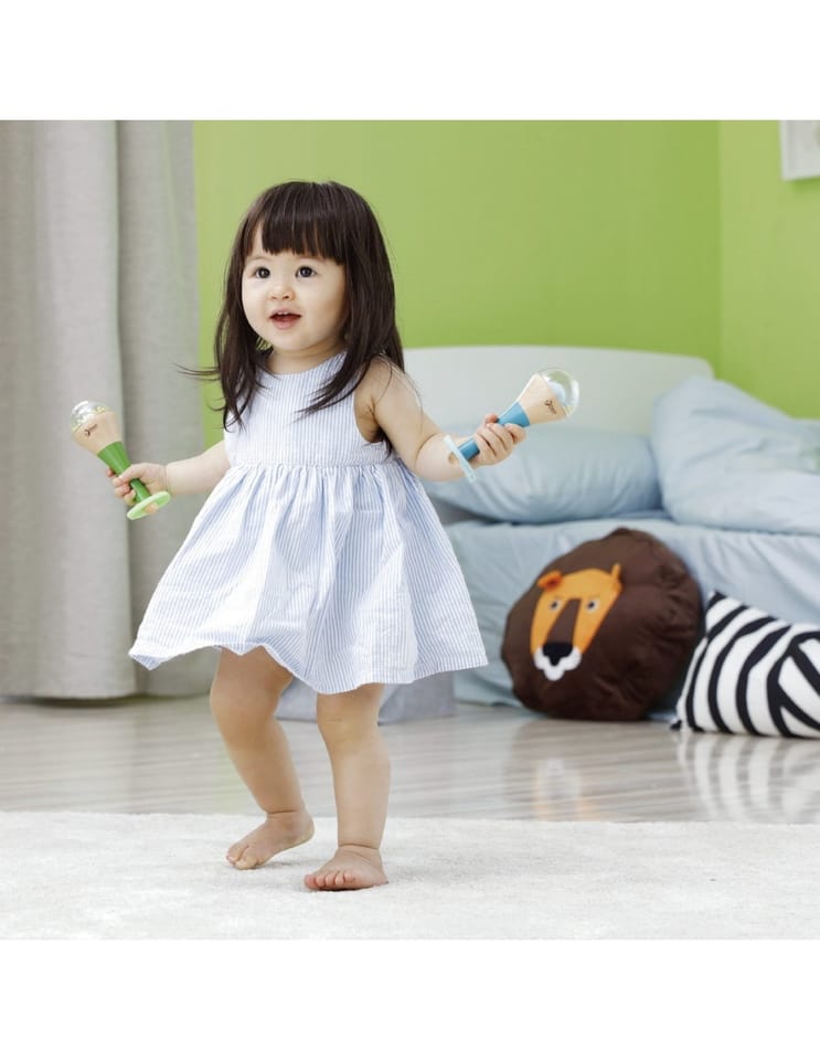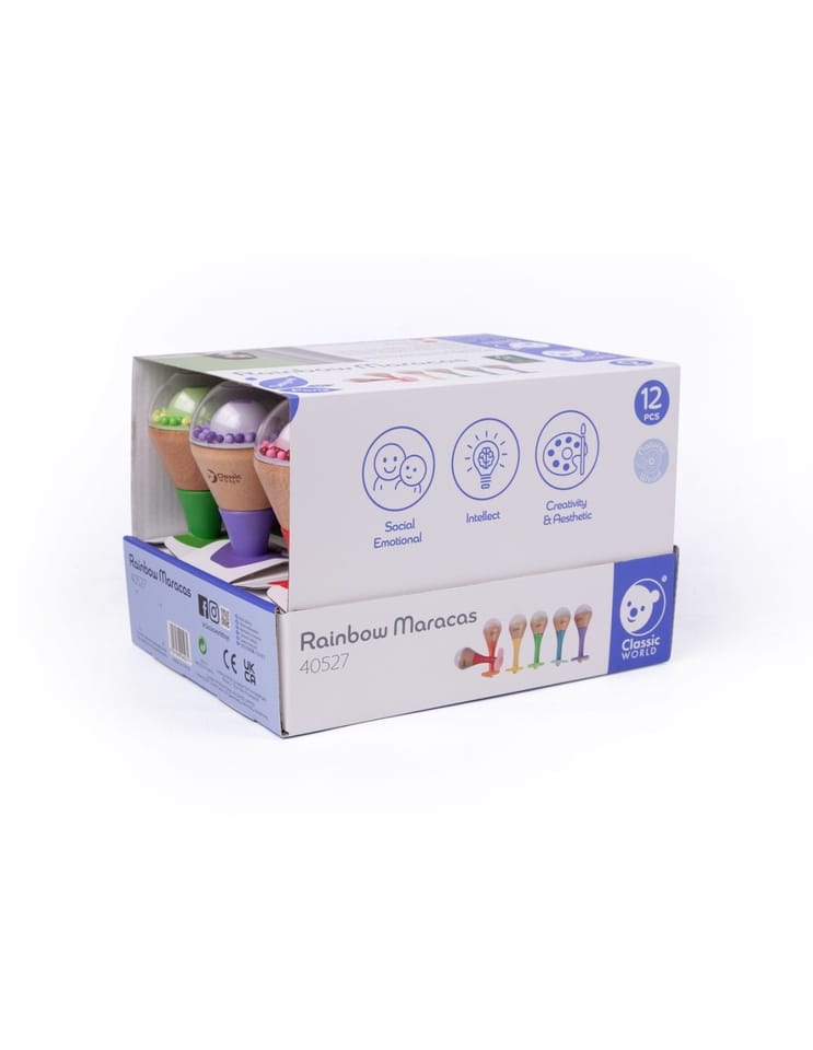 Drewniany Instrument Marakas 2w1 Grzechotka od Classic World to świetny pomysł na prezent dla każdego małego fana muzyki. Dzięki nim dziecko może tworzyć własne rytmy i powoli wchodzić w świat muzyki. Podczas zabawy mogą również zawiesić oko na skaczących koralikach w środku instrumentu. Naucz swoje pociechy rytmu stymulując ich zmysły tymi wspaniałymi marakasami.