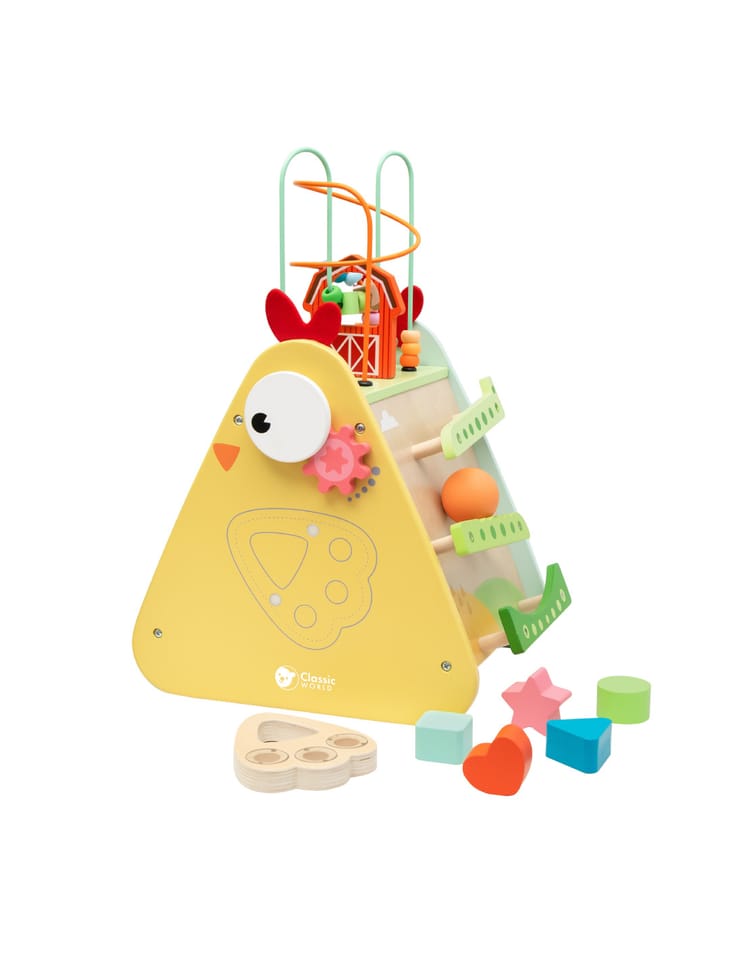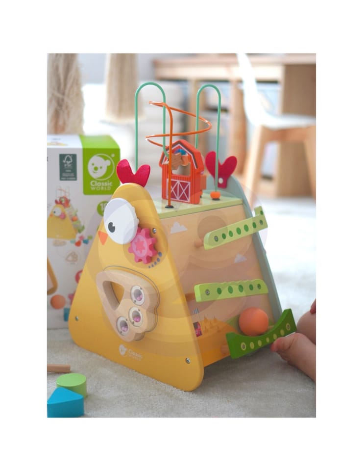 Labirynt Przeplatanka Montessori 10w1 od Classic World to uniwersalny zestaw edukacyjny łączący wiele aktywności w jednej zabawce — od labiryntów przez pętle, sortery po elementy manipulacyjne. Dzięki różnorodności zadań dziecko może eksplorować i uczyć się na wiele sposobów, bez zmiany zabawki. Zestaw wykonano z bezpiecznego drewna, pomalowanego nietoksycznymi farbami, co zapewnia trwałość i bezpieczeństwo użytkowania. Każdy element zachęca do manipulacji ręcznej, rozwijając zdolności ruchowe i intelektualne. To doskonała opcja na prezent, która łączy zabawę z nauką — idealna do domu i przedszkola.