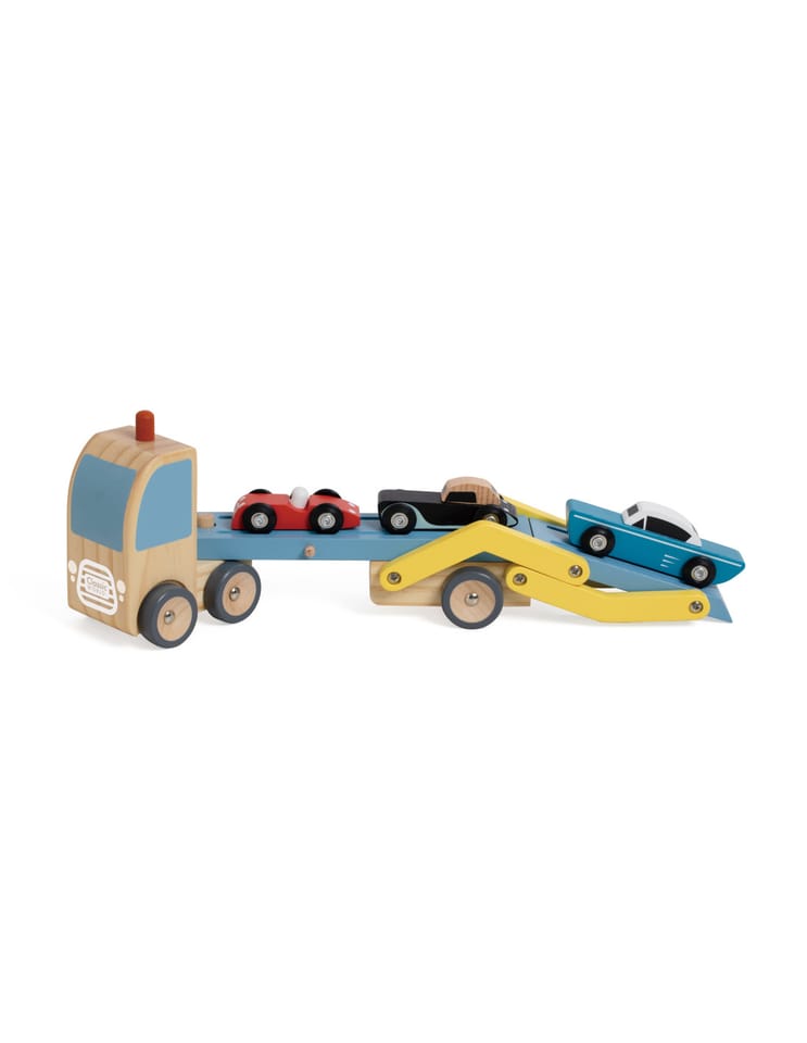 - Zestaw zawiera: 1 ciężarówkę lawetę i 3 pojazdy