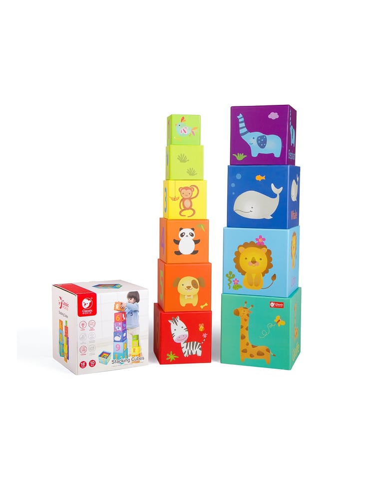 Kartonowa wieża-piramidka z motywem zwierząt od Classic World łączy zabawę z edukacją, oferując różnorodne klocki do układania i nauki liczenia. Każdy klocek przedstawia innego mieszkańca sawanny, co zachęca dziecko do poznawania świata zwierząt. Dzięki wieży maluch może tworzyć układy, rozwijając zdolność planowania i porządku w zabawie. Naturalny materiał i bezpieczne, jasne kolory zapewniają trwałość i przyjazny design. Idealna zabawka dla dzieci, które uwielbiają uczyć się przez zabawę i eksplorować świat przyrody.