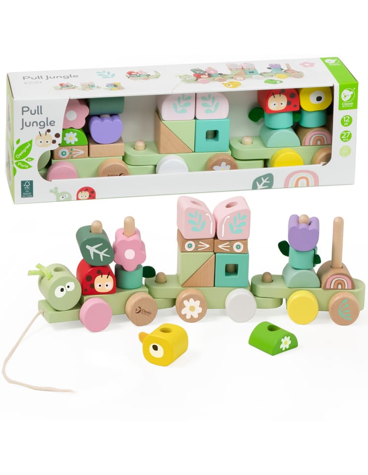 Drewniana Kolejka Gąsienica od Classic World to zabawka w pięknych pastelowych kolorach,która nie tylko cieszy oko naszych pociech, ale także rozwija wyobraźnię, koordynację i zdolności manualne.Motyw dżungli wprowadza dzieci w świat przyrody, uczy je o zwierzętach, roślinach i owadach, rozwija zainteresowanie przyrodą i świadomość ekologiczną.Dzieci mogą dowolnie mieszać i dopasowywać te elementy, tworząc wciągające i żywe doświadczenie inspirowane dżunglą. Jeśli stawiasz na dobry rozwój swojego dziecka powinieneś wiedzieć, że Kolejka Gąsienica wspiera rozwój małej motoryki - motoryką małą określa się ruchy palców i dłoni. Są to ruchy angażujące niewielką część ciała, jednakże wymagające koncentracji uwagi oraz skupienia na wykonywanej czynności. Zabawka wykonana jest z wysokiej jakości drewna. Kolejną zaletą jest gładko oszlifowana, przyjemna w dotyku powierzchnia, zapewni ona BEZPIECZNĄ zabawę dziecka. Kolejka Gąsienica ma także funkcję ciągnięcia za dołączony sznureczek- twoje dziecko na pewno nie będzie się nudzić!